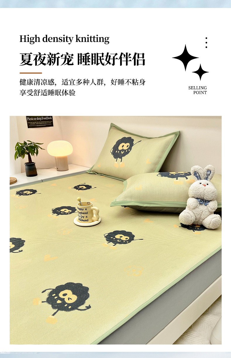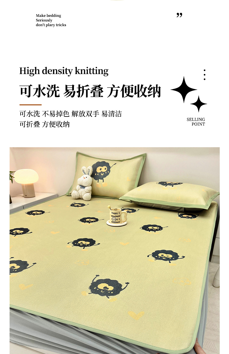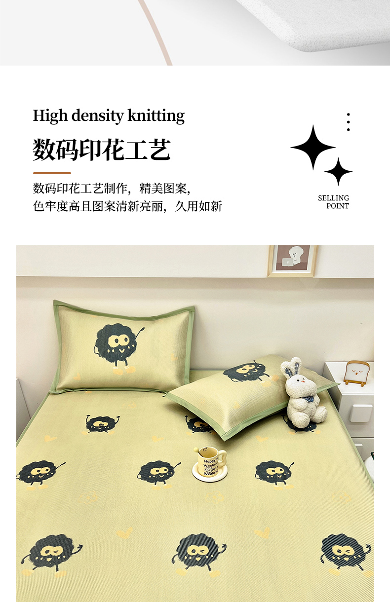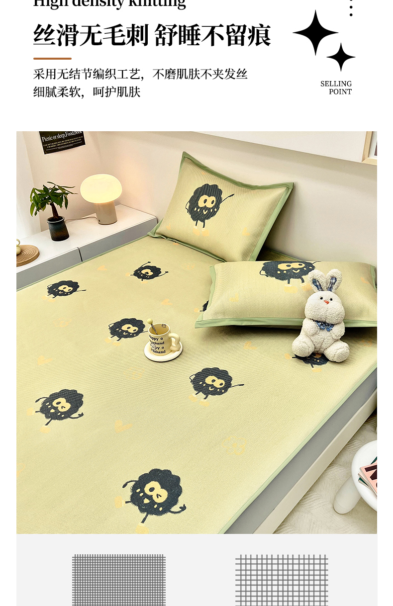 当前位置: 91家纺网 > 商品网购 > 床上用品 > 凉席 > 藤席 > 全季家居 2024新款5A抗菌小清新数码印花冰藤席 小煤球(床笠款)