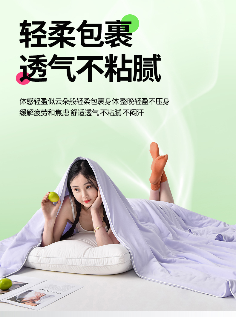 商品名称:2024新款凉感丝100%锦纶170克凉感丝冰淇淋A类抗菌夏凉被空调被 梦幻紫