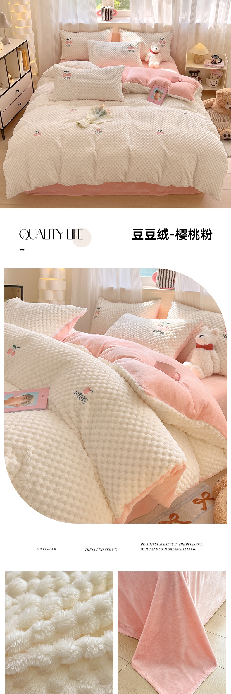 商品名称:铭宣家居 2024新款A类豆豆绒刺绣款四件套 豆豆绒-樱桃粉