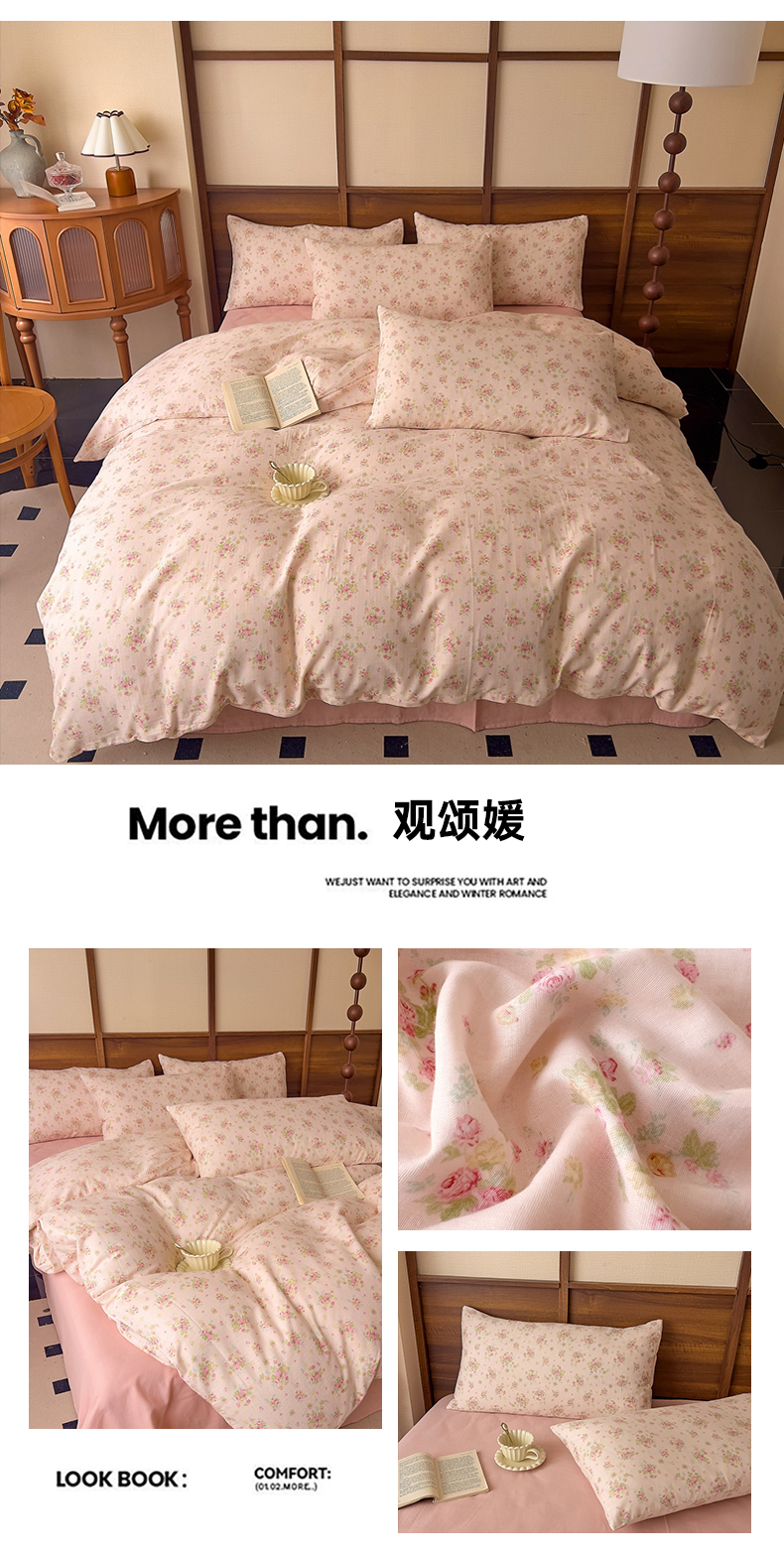 (总)优品阁 2025新款全棉A类双层纱四件套,不止玫瑰,初恋,浮生,妮卡,桃金娘,小丁香,初春,繁星,圣诞派对,晚香玉
