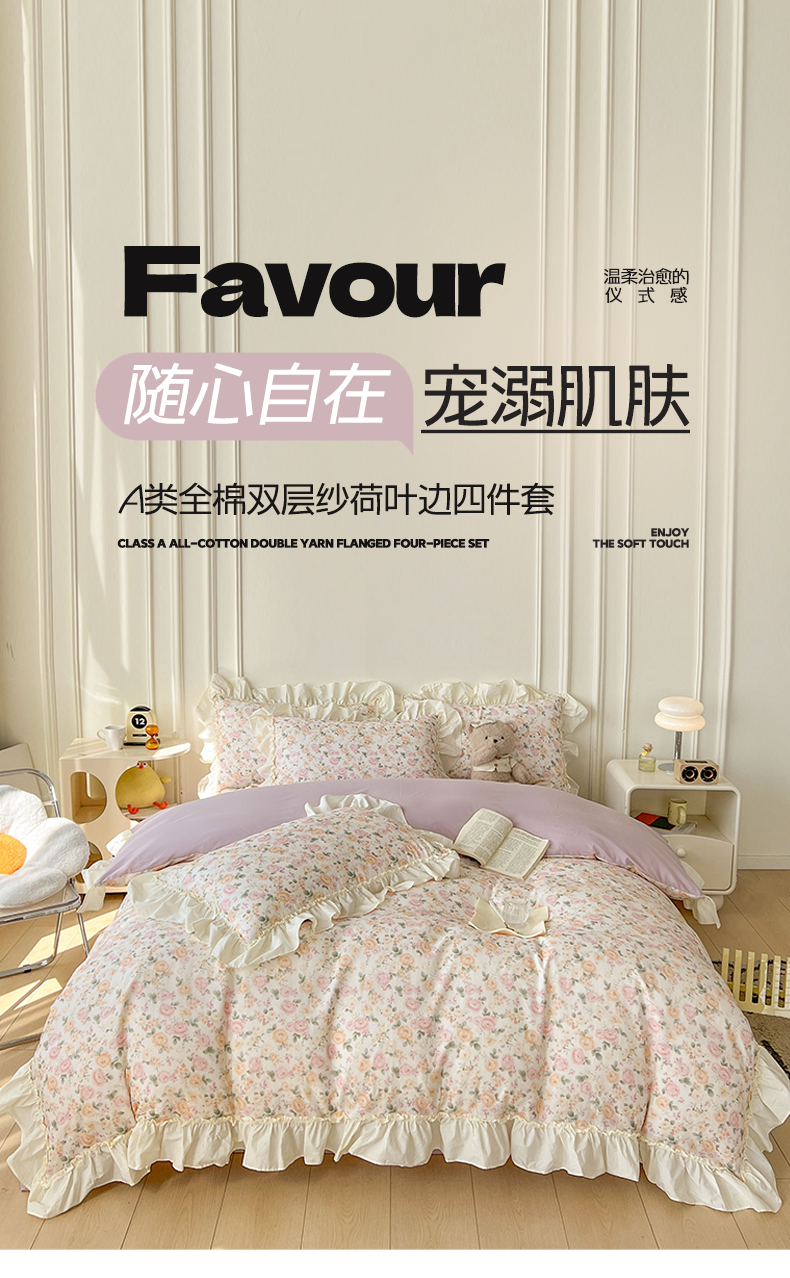 当前位置: 91家纺网 > 商品网购 > 床品套件 > 四件套 > 双层纱四件套 > 涵宸家纺 2025新款A类全棉双层纱荷叶花边四件套 花边-甜酷豹纹