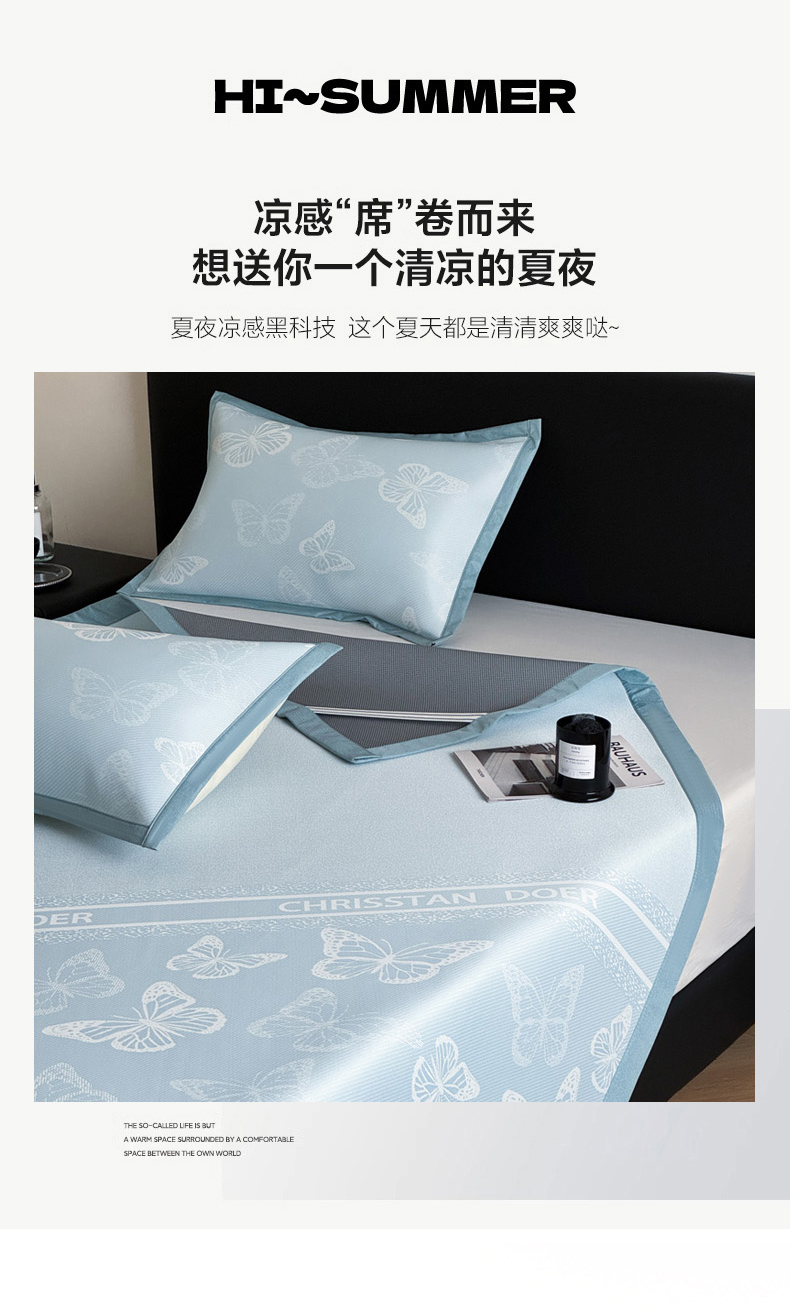 九花鹿2024新款A类大版碳光冰丝凉席床笠款三件套四件套,大版床笠款-漂亮女孩