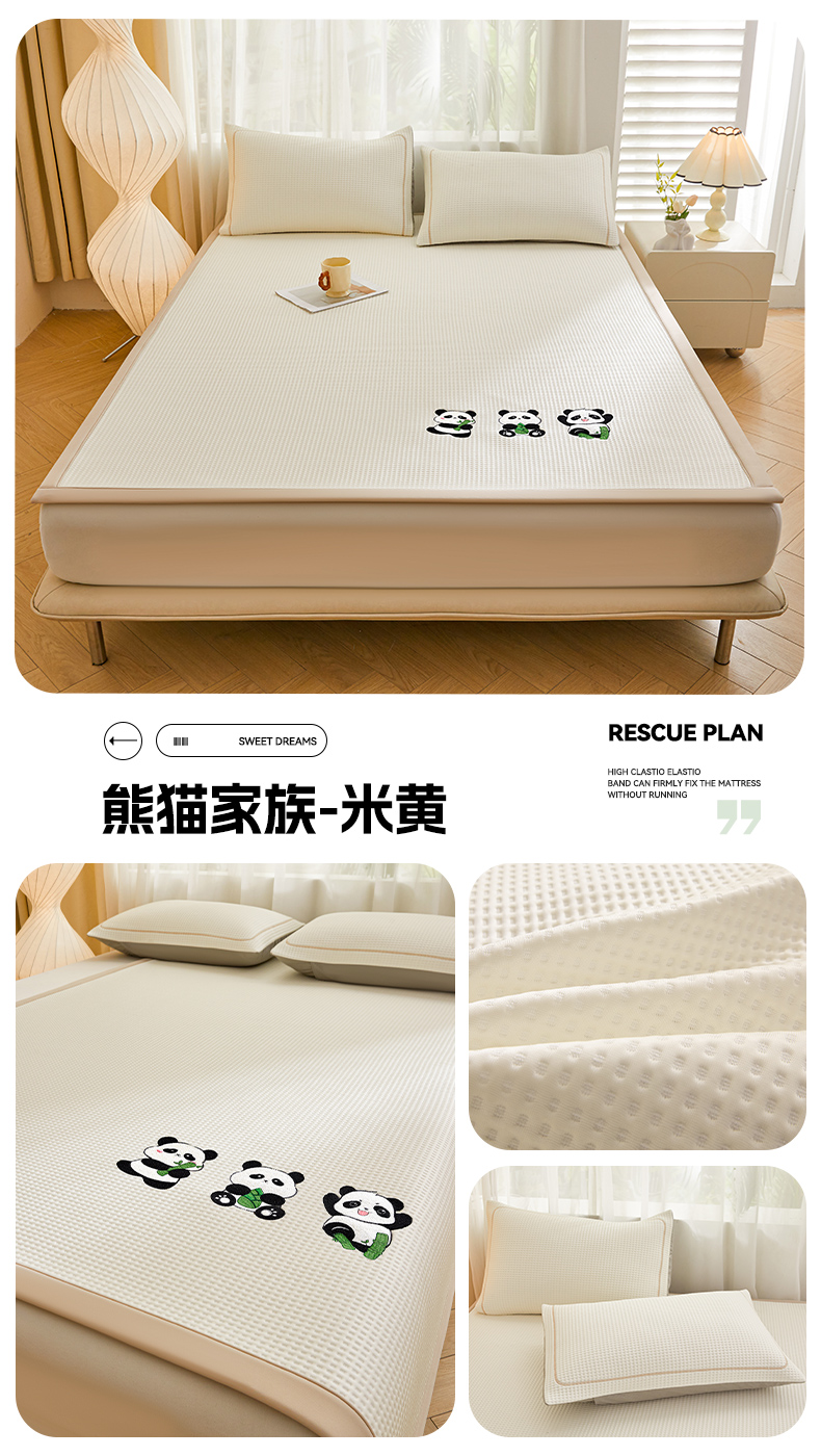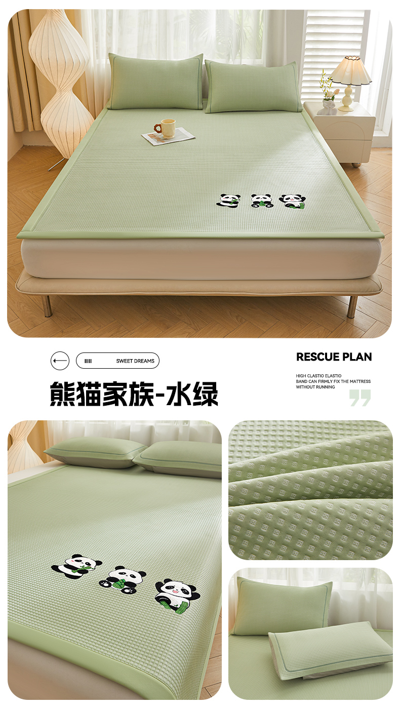 • 91家纺网 家纺一手货源 找家纺 (总)全季家居 2025新款A类抗菌防螨贪吃熊猫系列冰藤席凉席席子,金咖 床席,水绿 床席,银灰 床席,金咖 床笠,水绿 床笠,银灰 床笠