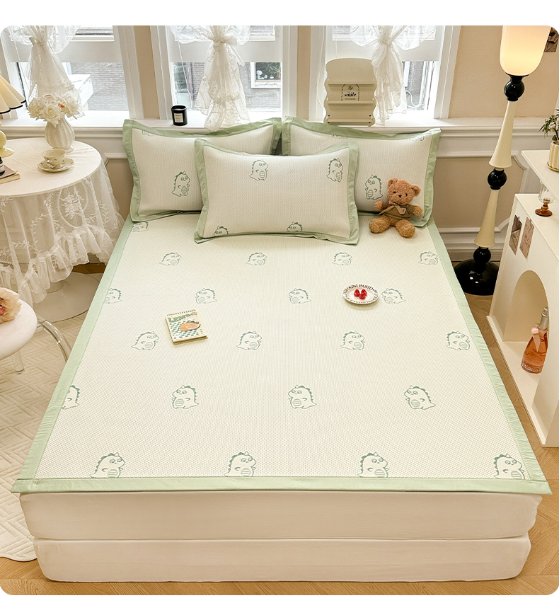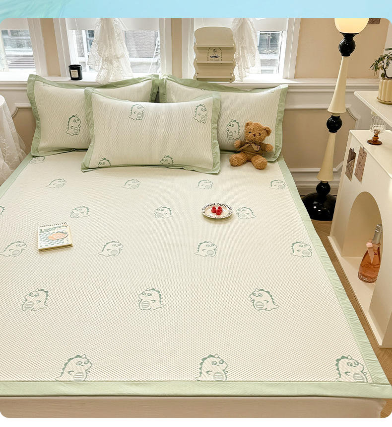 • 91家纺网 家纺一手货源 找家纺 全季家居 2025新款A类乙纶PE小动物系列凉豆豆席凉席席子 小恐龙-天蓝-床笠款