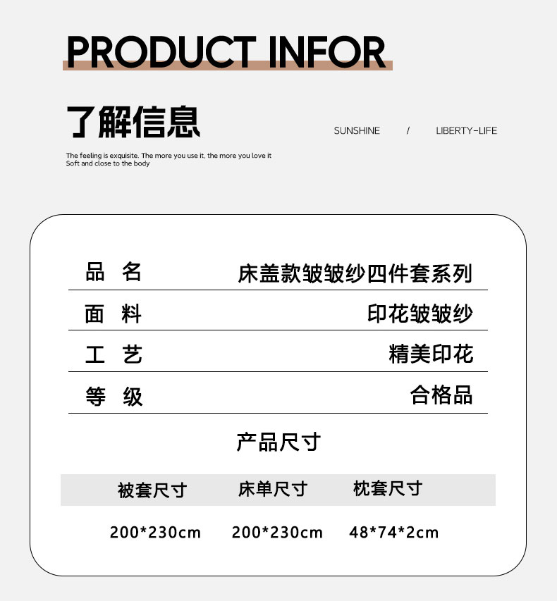商品名称:仟网汇 2025新款亲肤皱皱棉四件套皱皱纱四件套 玫瑰花园-红