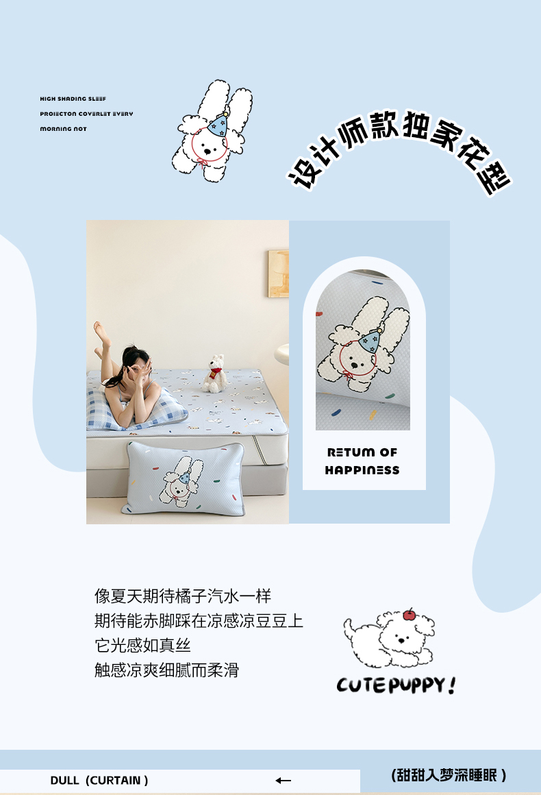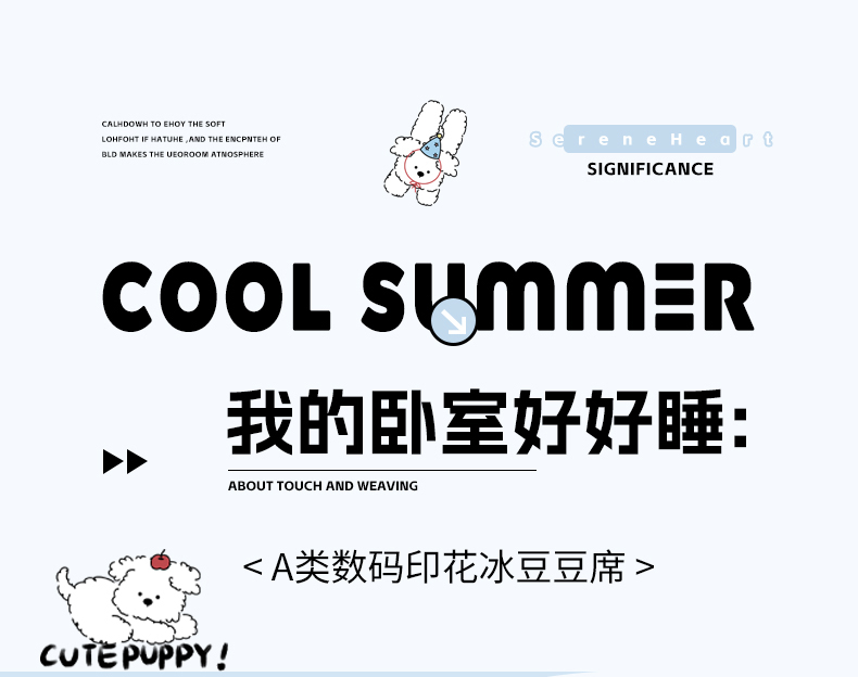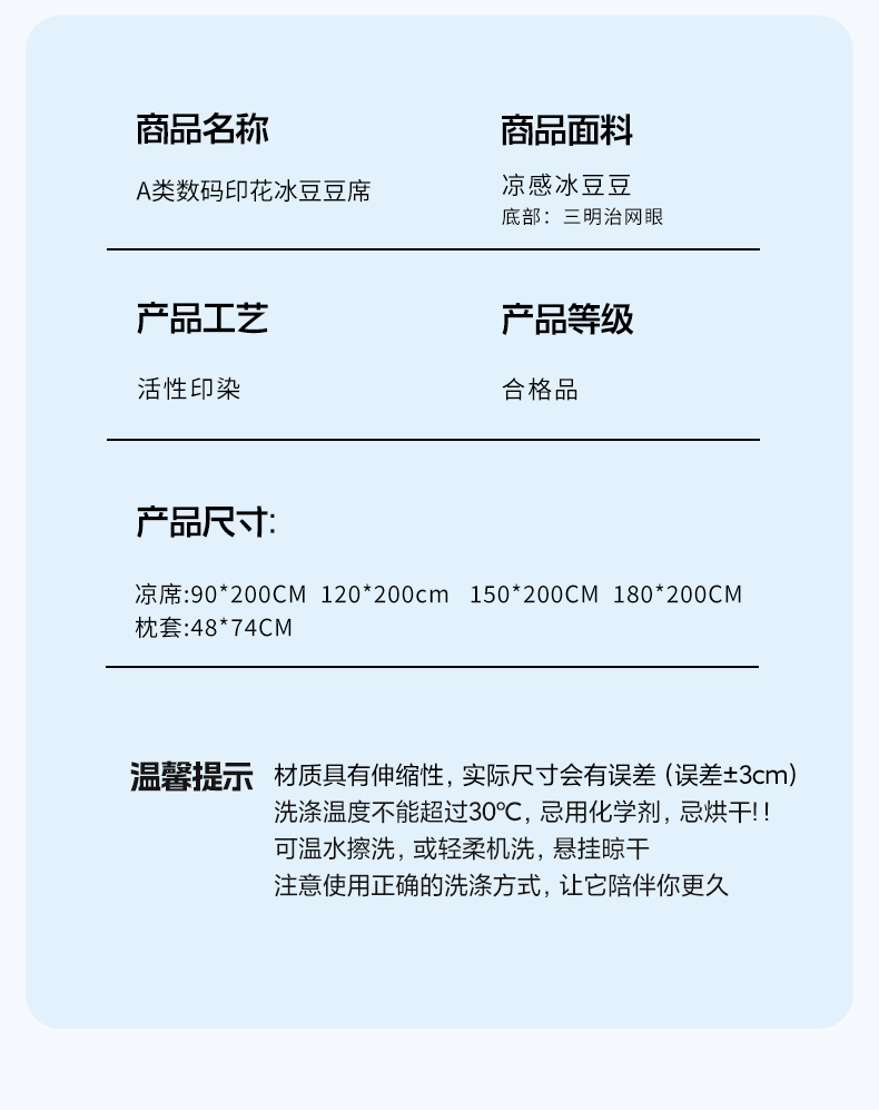 商品名称:RYB红黄兰 2025新款ins设计师原创A类数码大版卡通印花冰豆豆席凉席席子 糖果小白