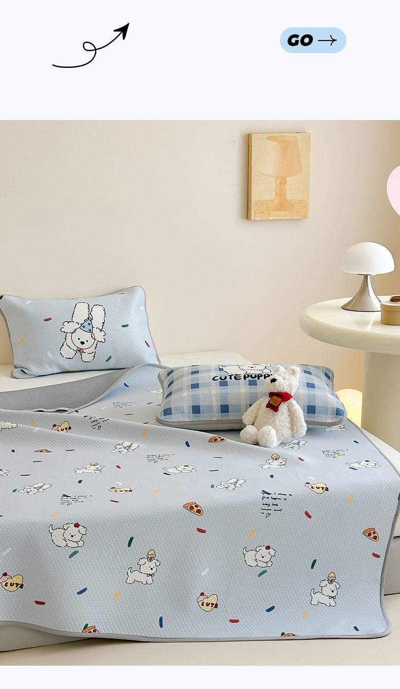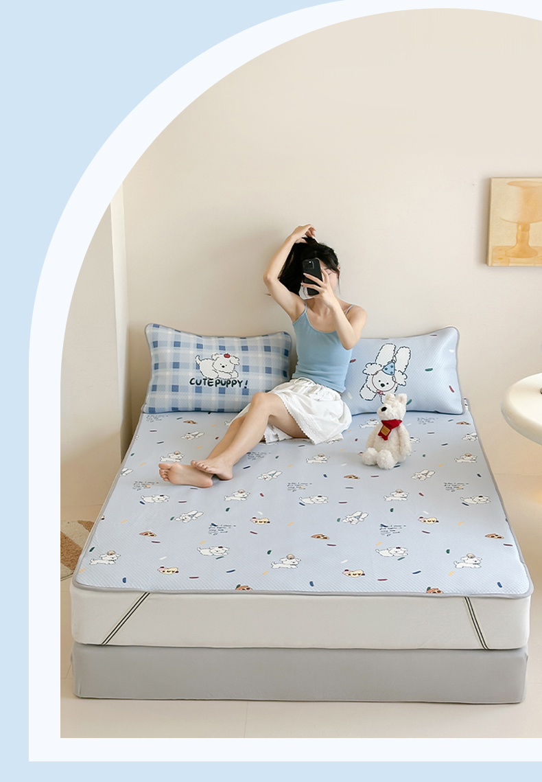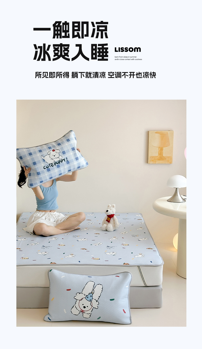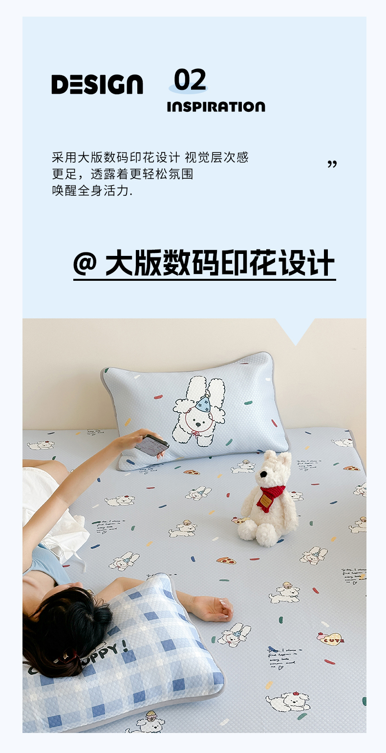 RYB红黄兰 2025新款ins设计师原创A类数码大版卡通印花冰豆豆席凉席席子 糖果小白