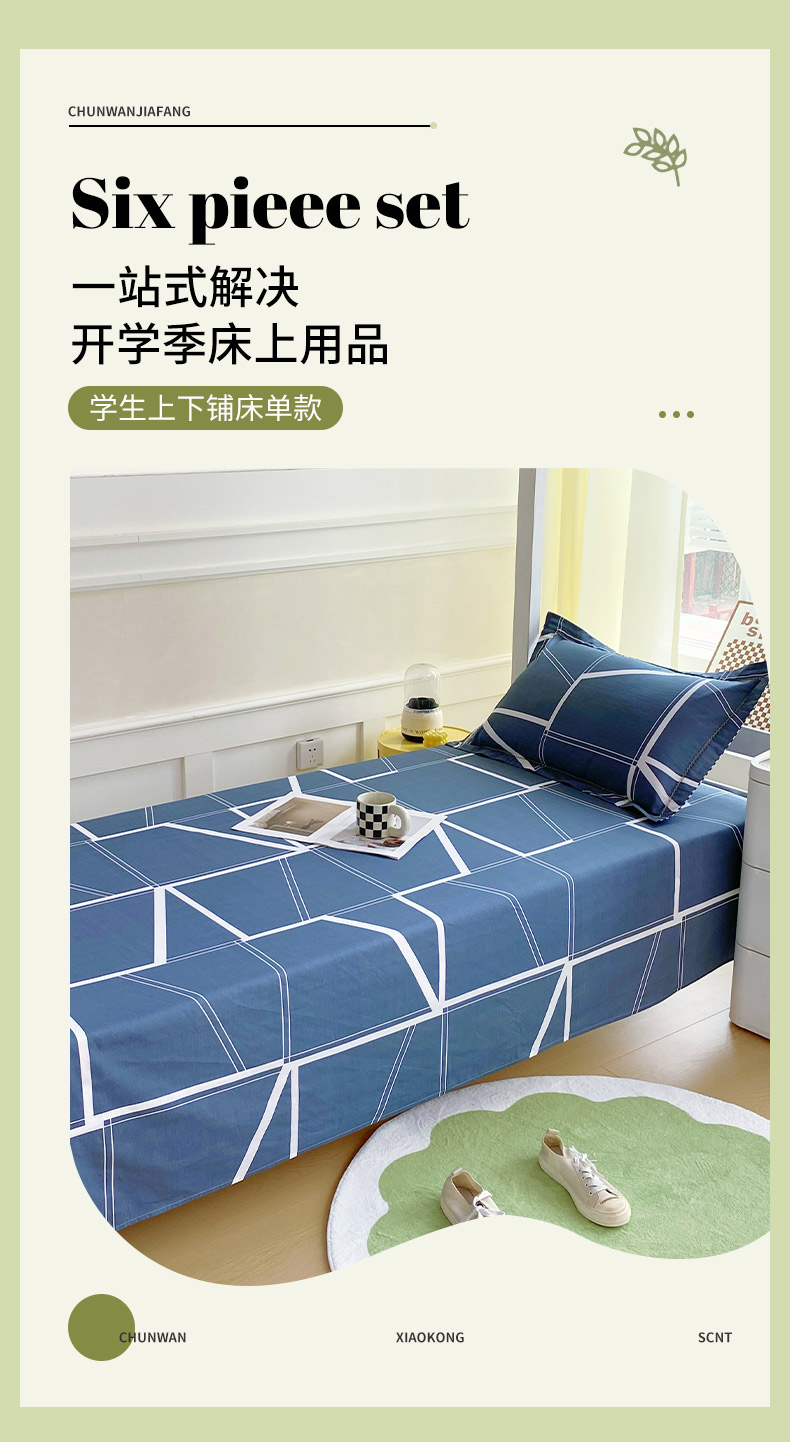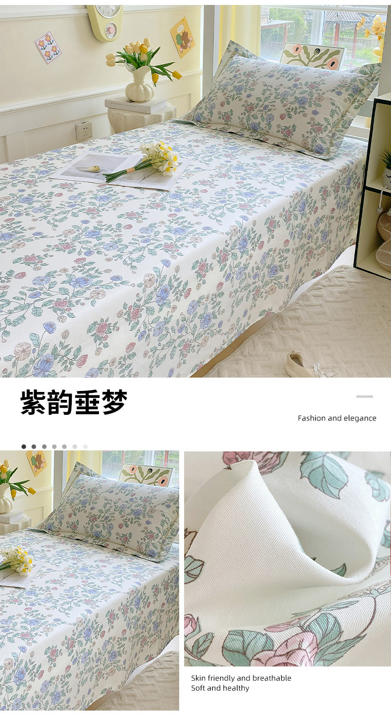 春皖家纺 2025新款学生季全棉纯棉13070印花单床单 床单单件 灰色逸彩