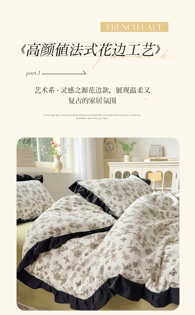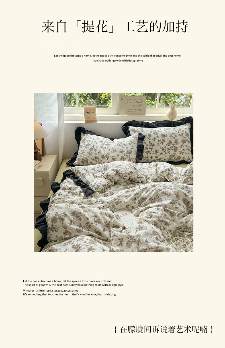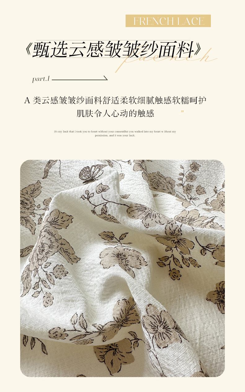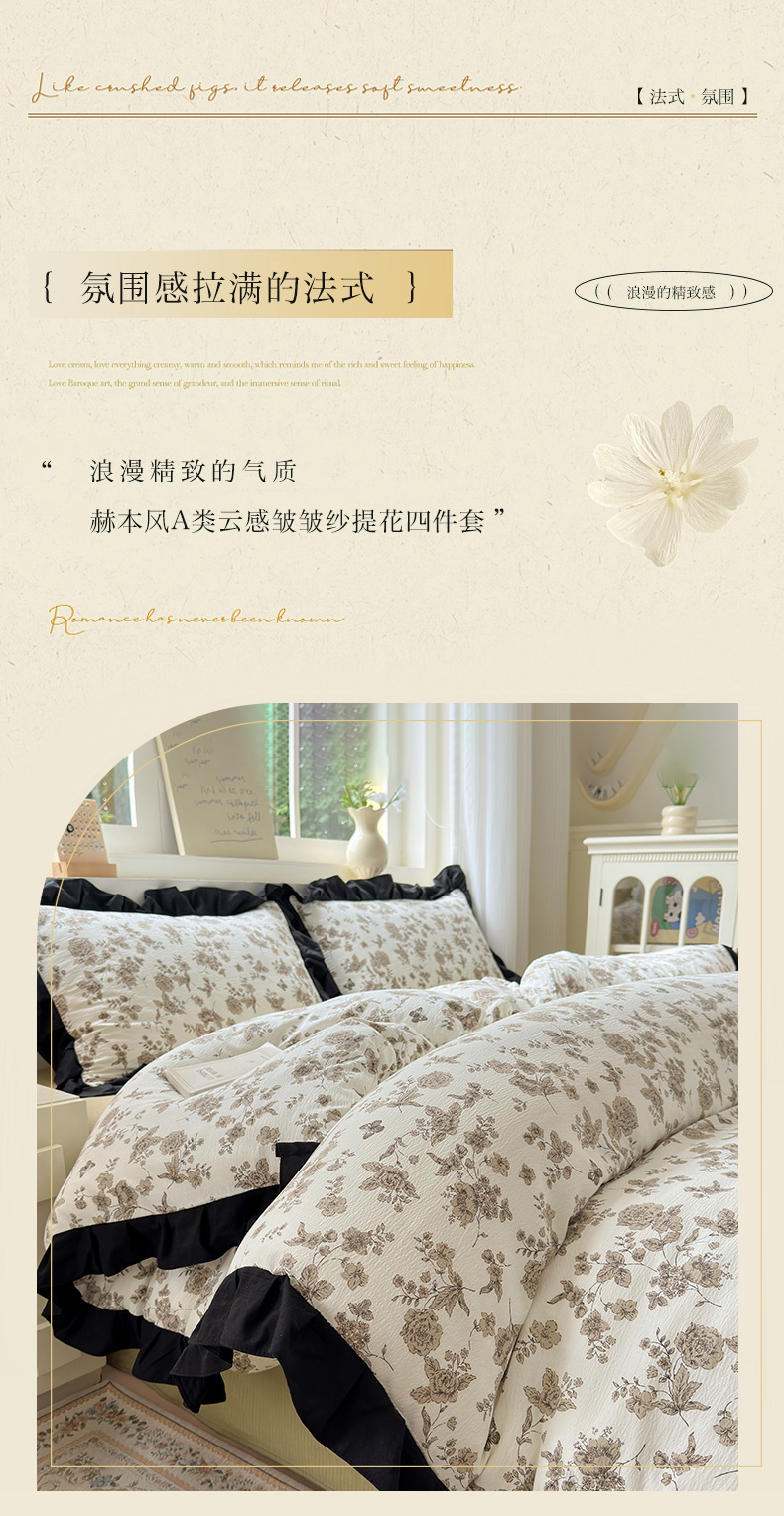 当前位置: 91家纺网 > 商品网购 > 床品套件 > 四件套 > 其它四件套 > 喜颜 2025新款云感提花皱皱棉爆款花边四件套-赫本风 陌上花开
