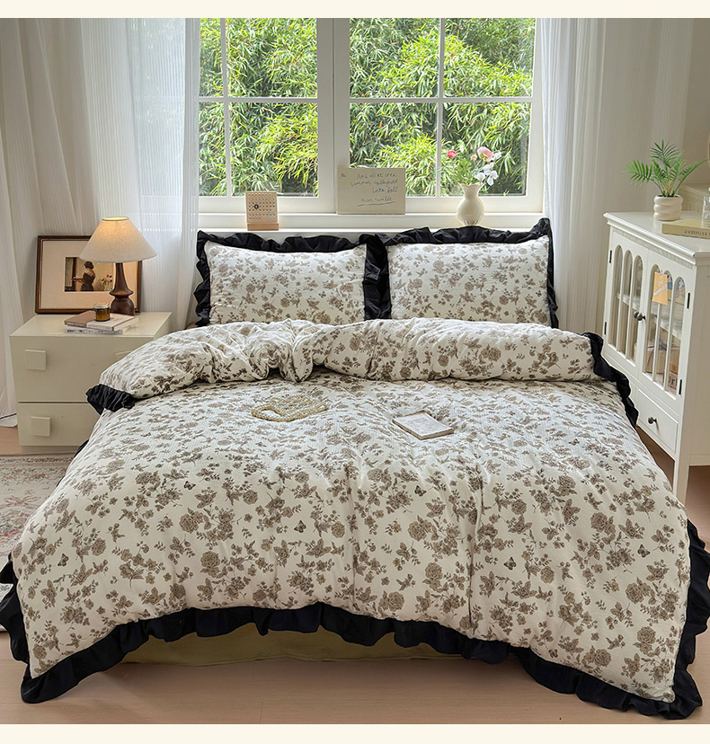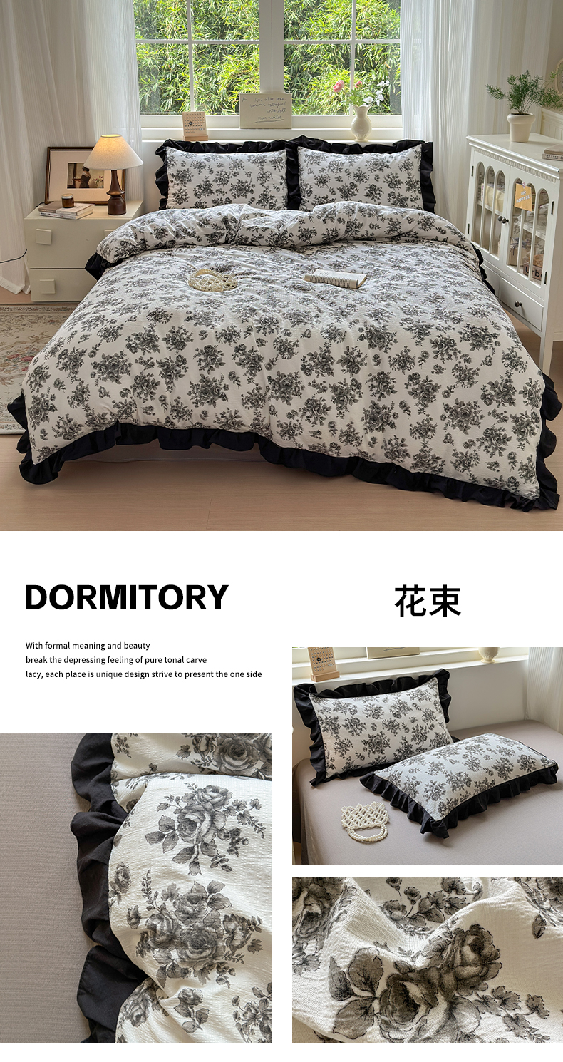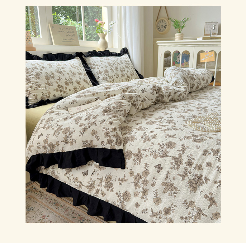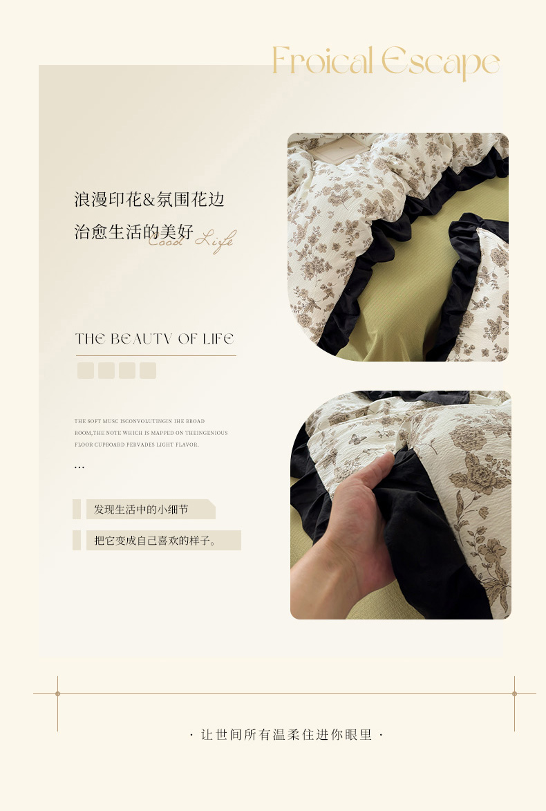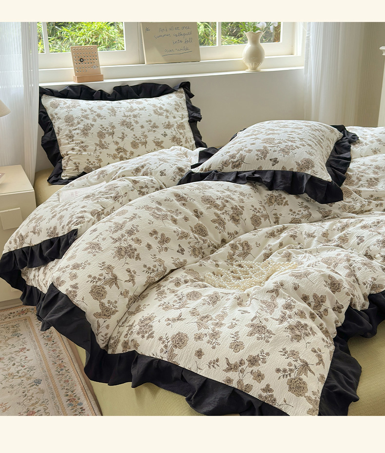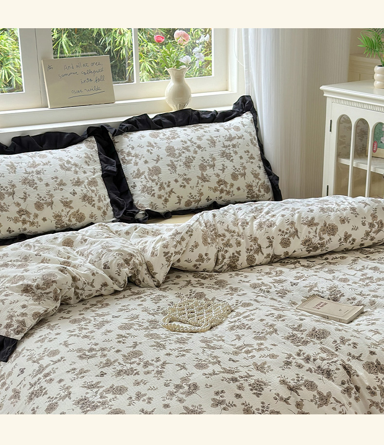 当前位置: 91家纺网 > 商品网购 > 床品套件 > 四件套 > 其它四件套 > 喜颜 2025新款云感提花皱皱棉爆款花边四件套-赫本风 陌上花开