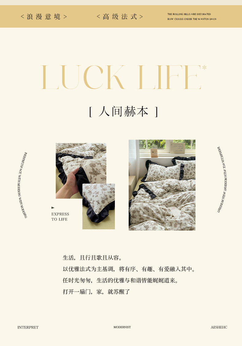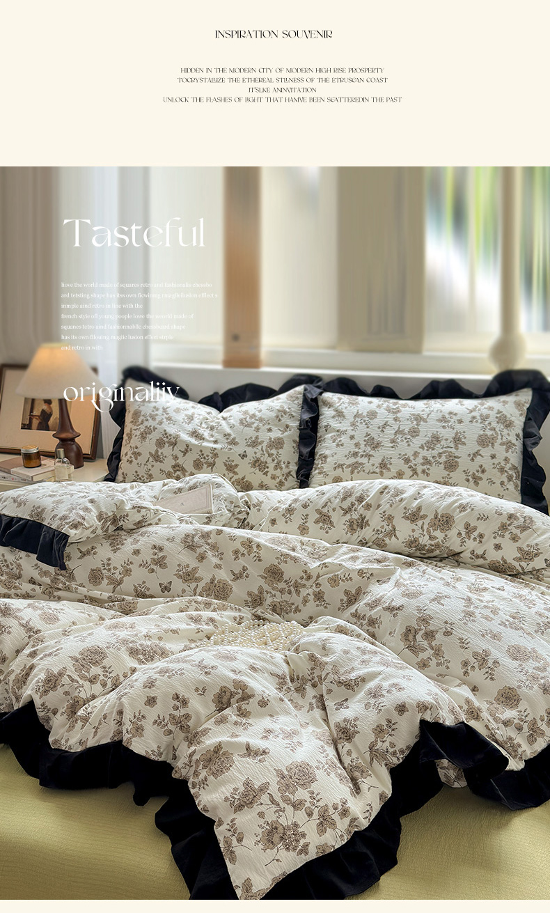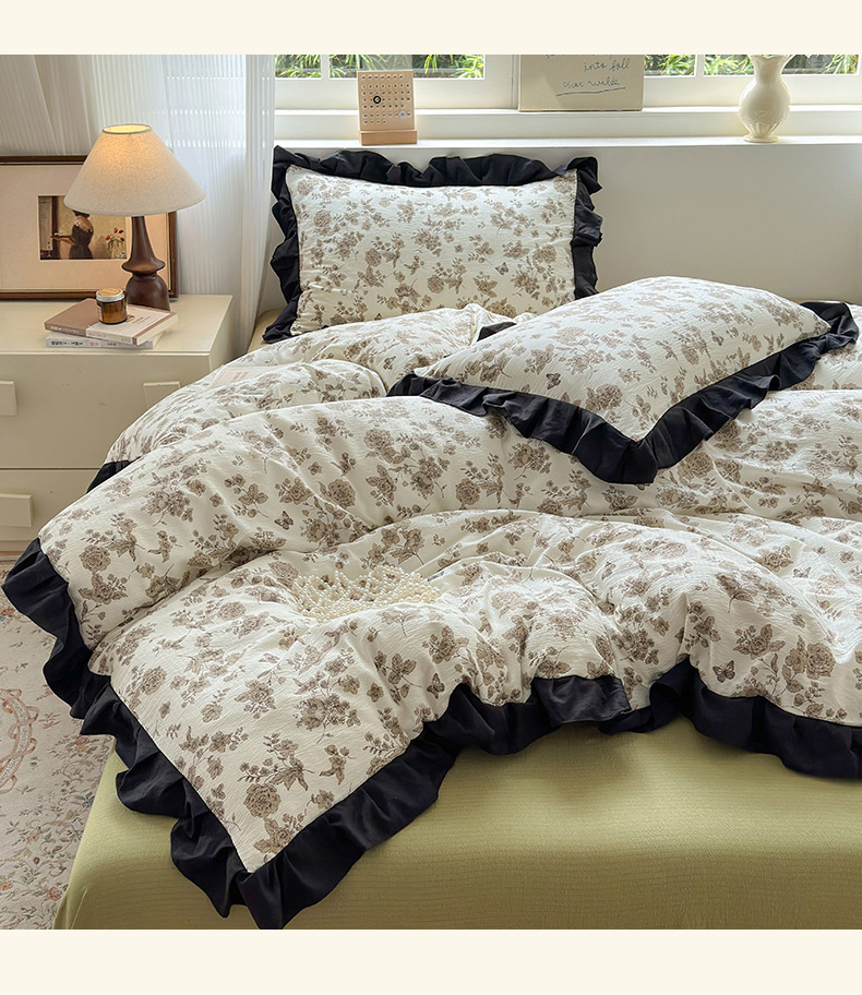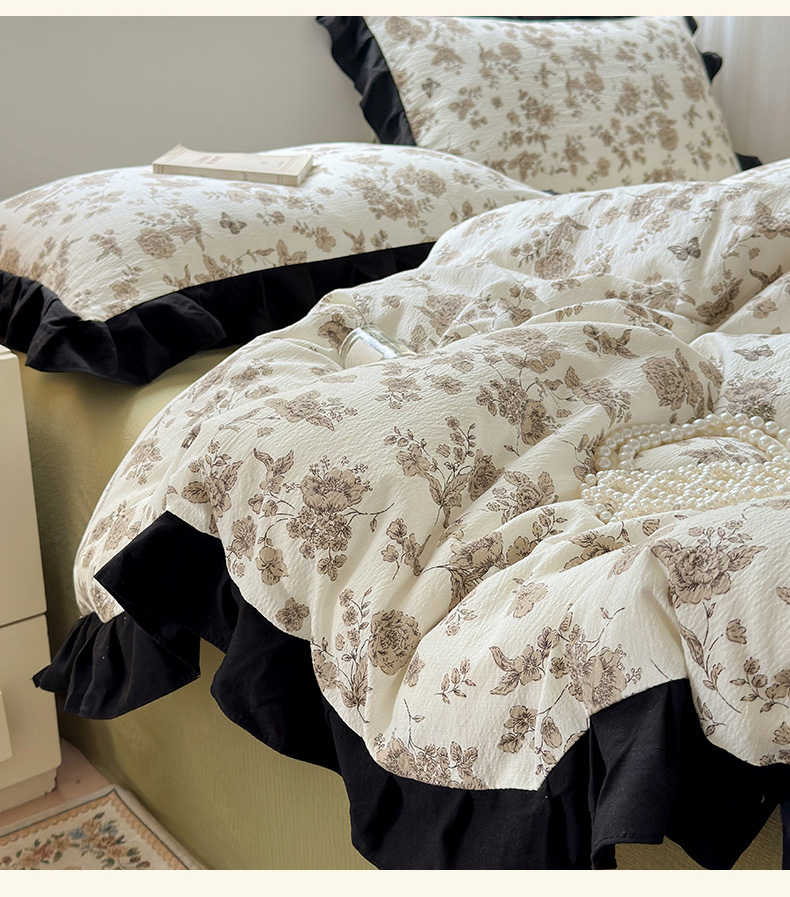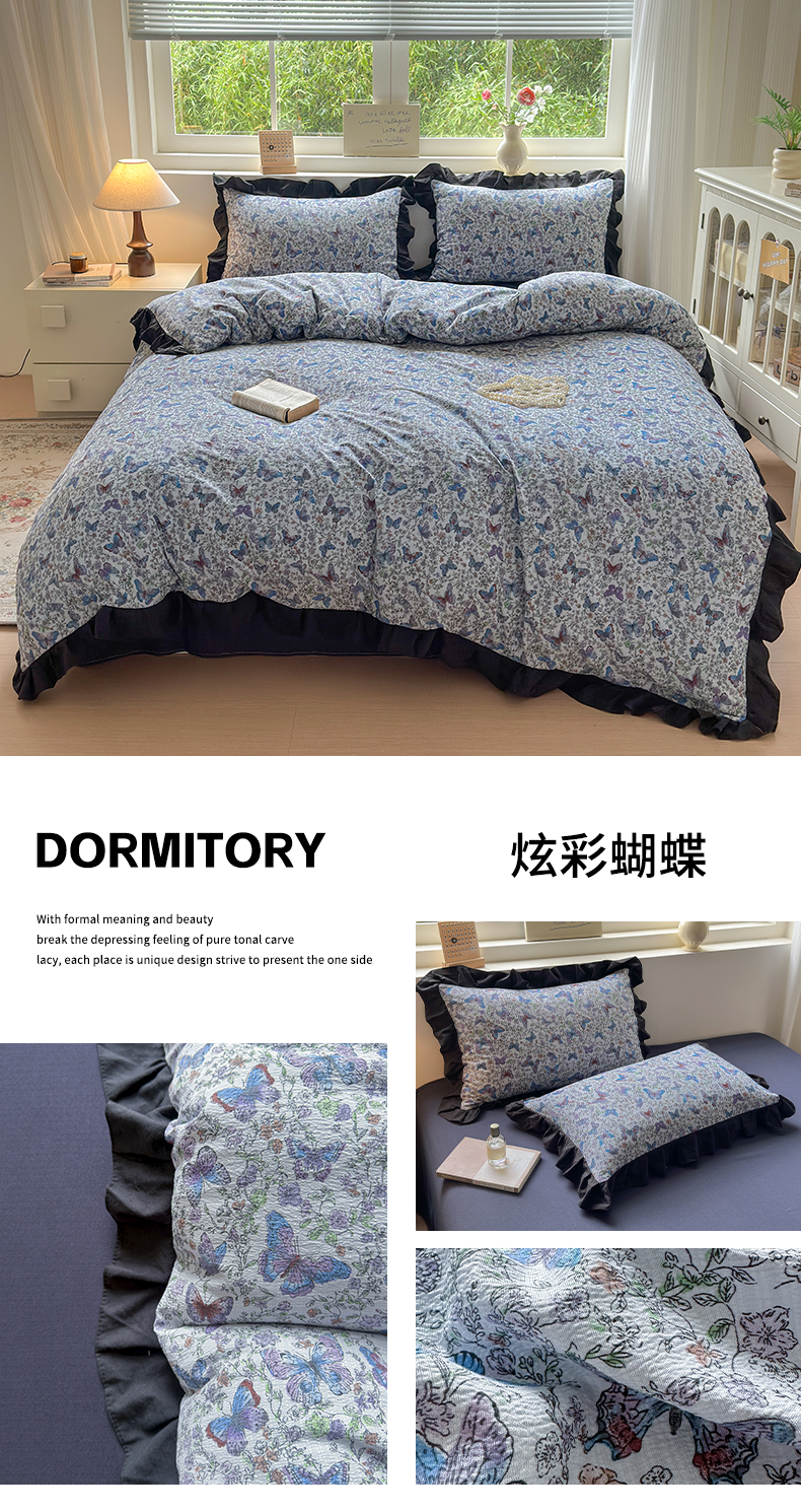 当前位置: 91家纺网 > 商品网购 > 床品套件 > 四件套 > 其它四件套 > 喜颜 2025新款云感提花皱皱棉爆款花边四件套-赫本风 陌上花开