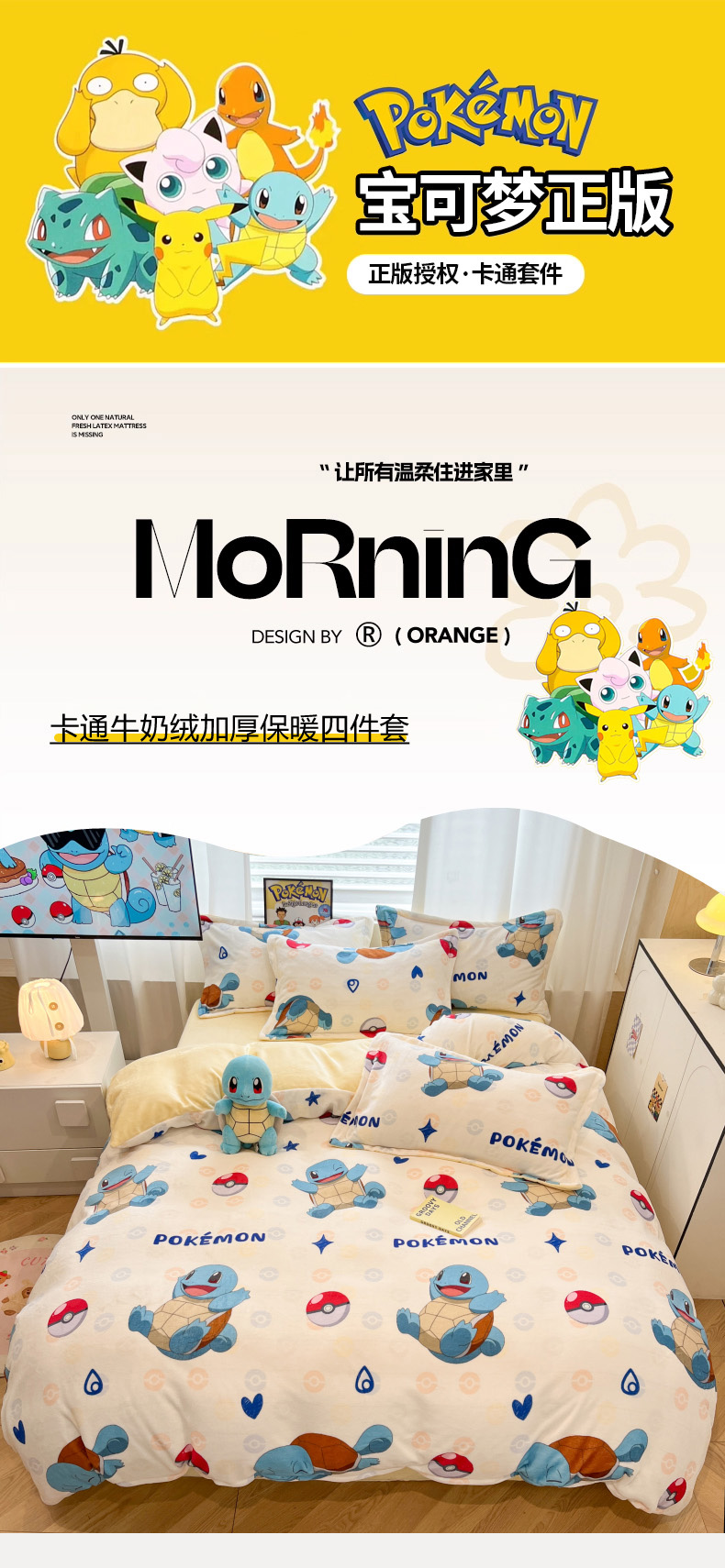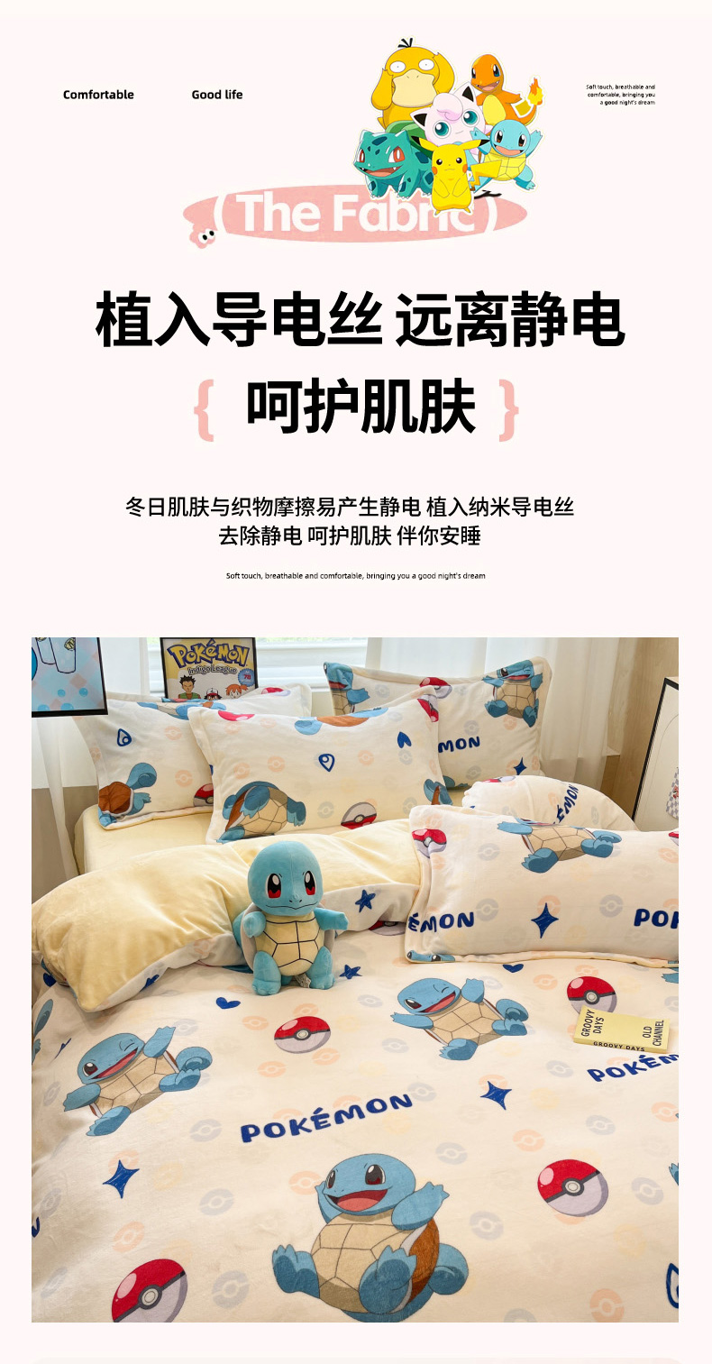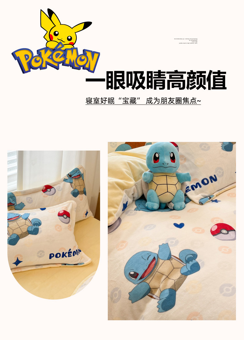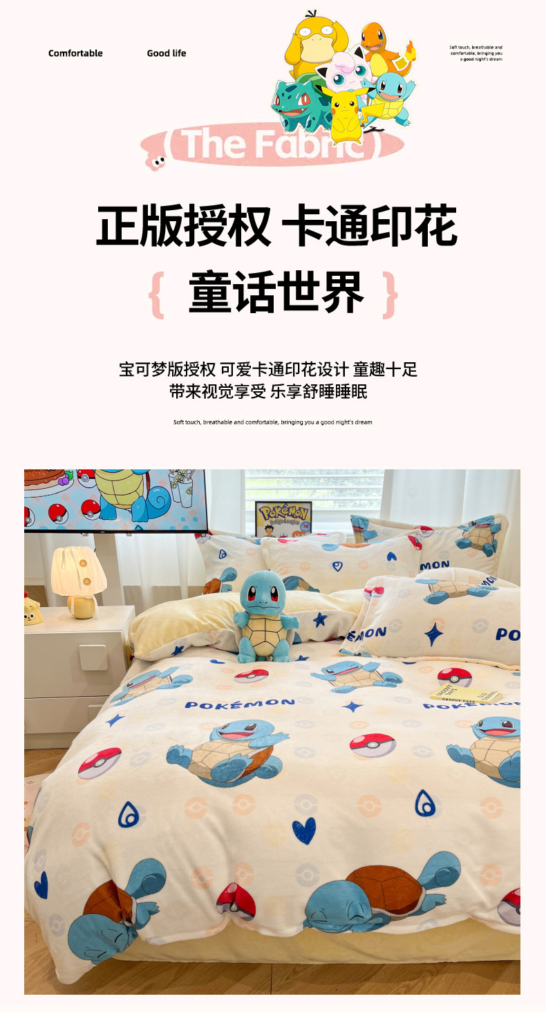 当前位置: 91家纺网 > 商品网购 > 床品套件 > 四件套 > 牛奶绒四件套 > 暮思家居 2025新款正版授权宝可梦数码印花高克重加厚保暖牛奶绒四件套 绒小版-杰尼龟