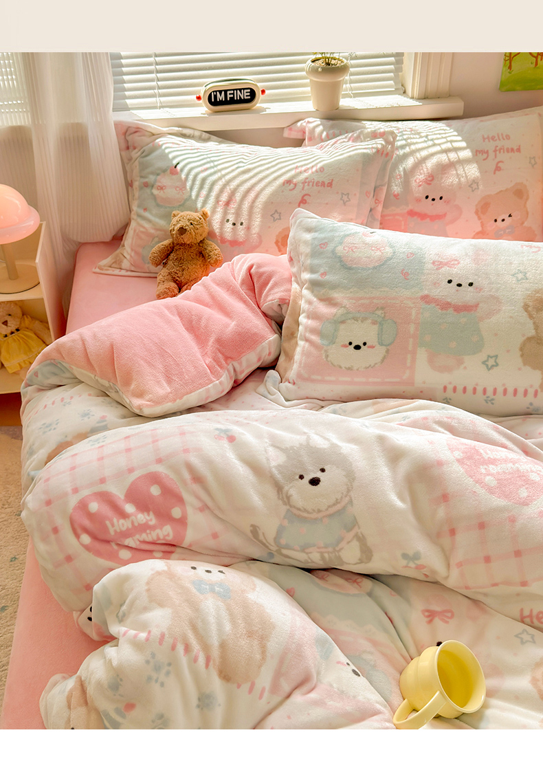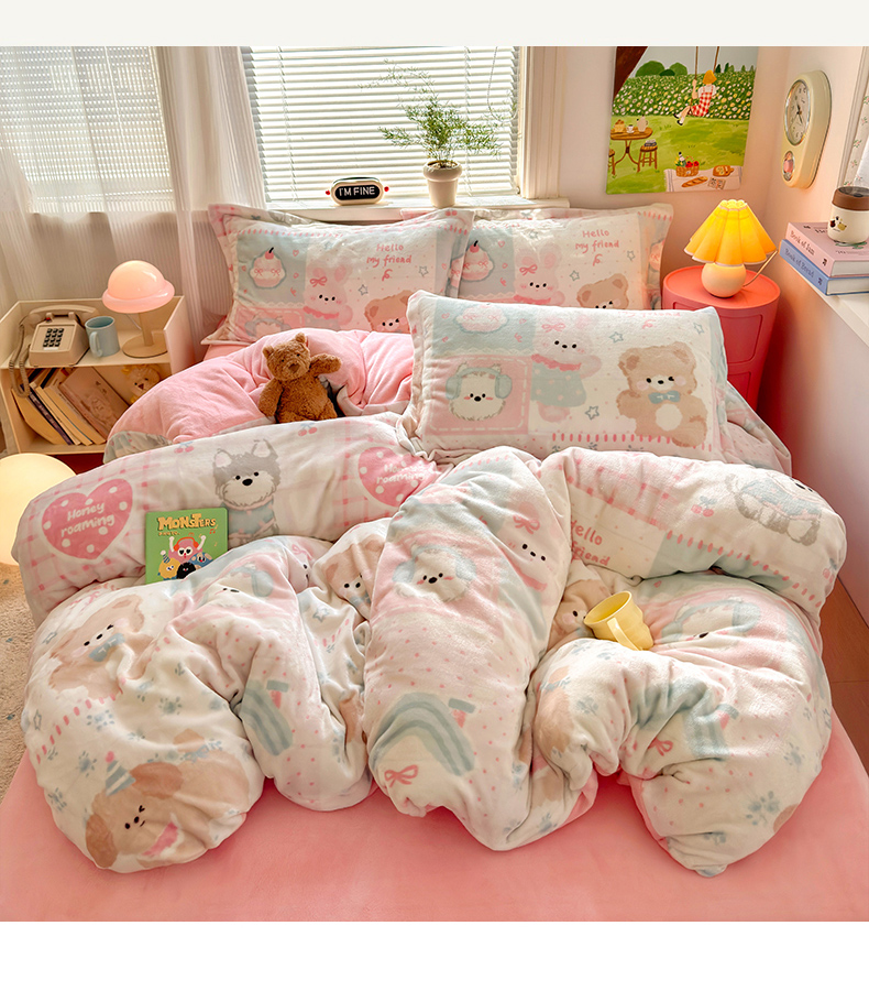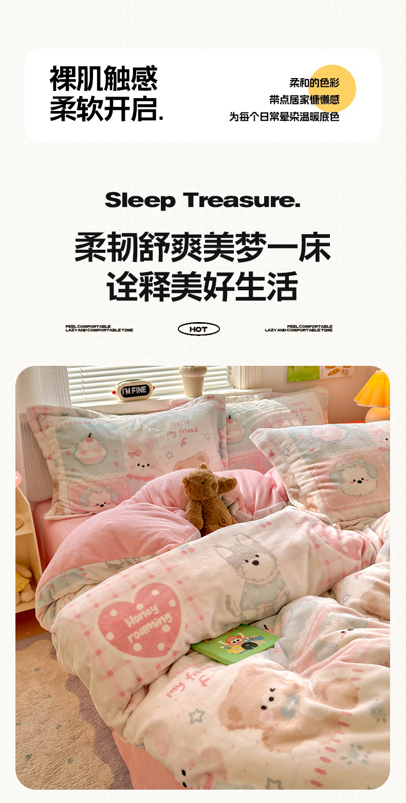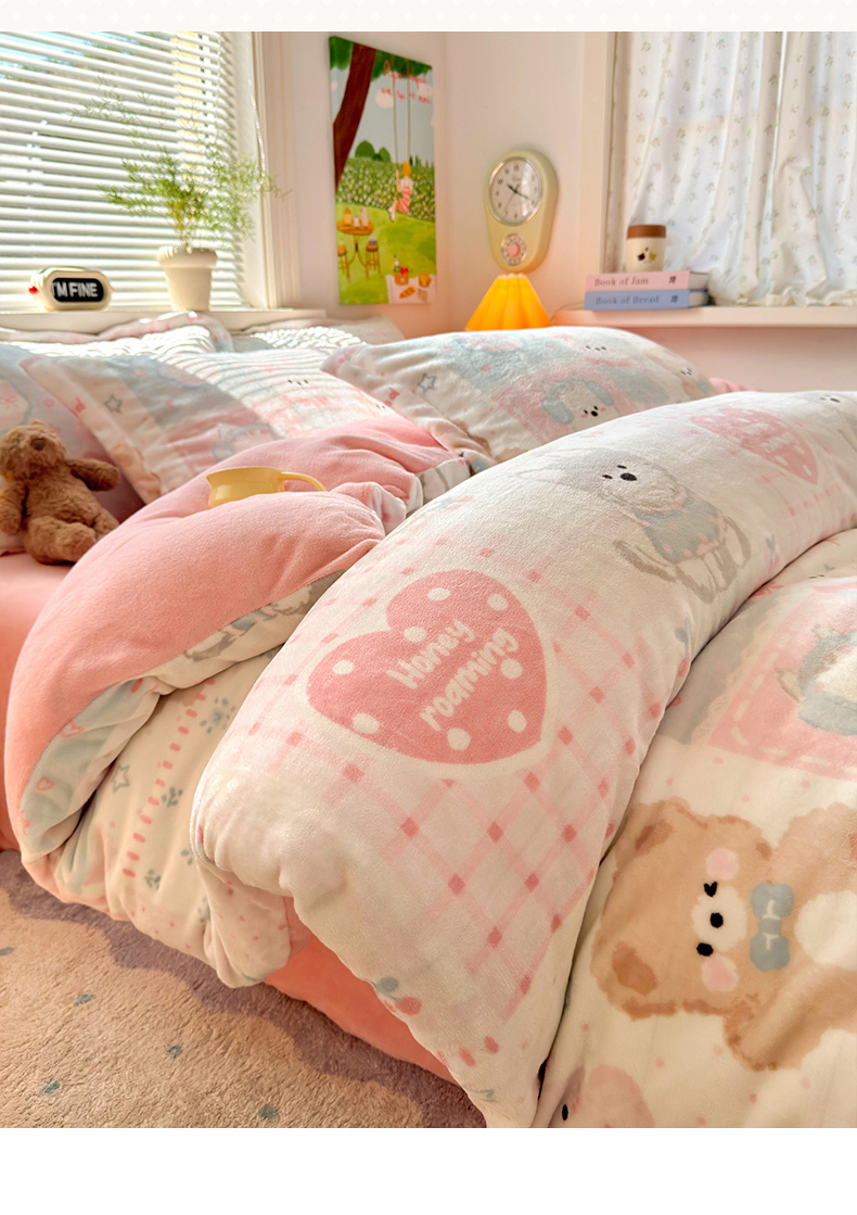 当前位置: 91家纺网 > 商品网购 > 床品套件 > 四件套 > 牛奶绒四件套 > 铭宣 2025新款高克重牛奶绒印花保暖四件套床单床笠单被套款 甜心宝贝