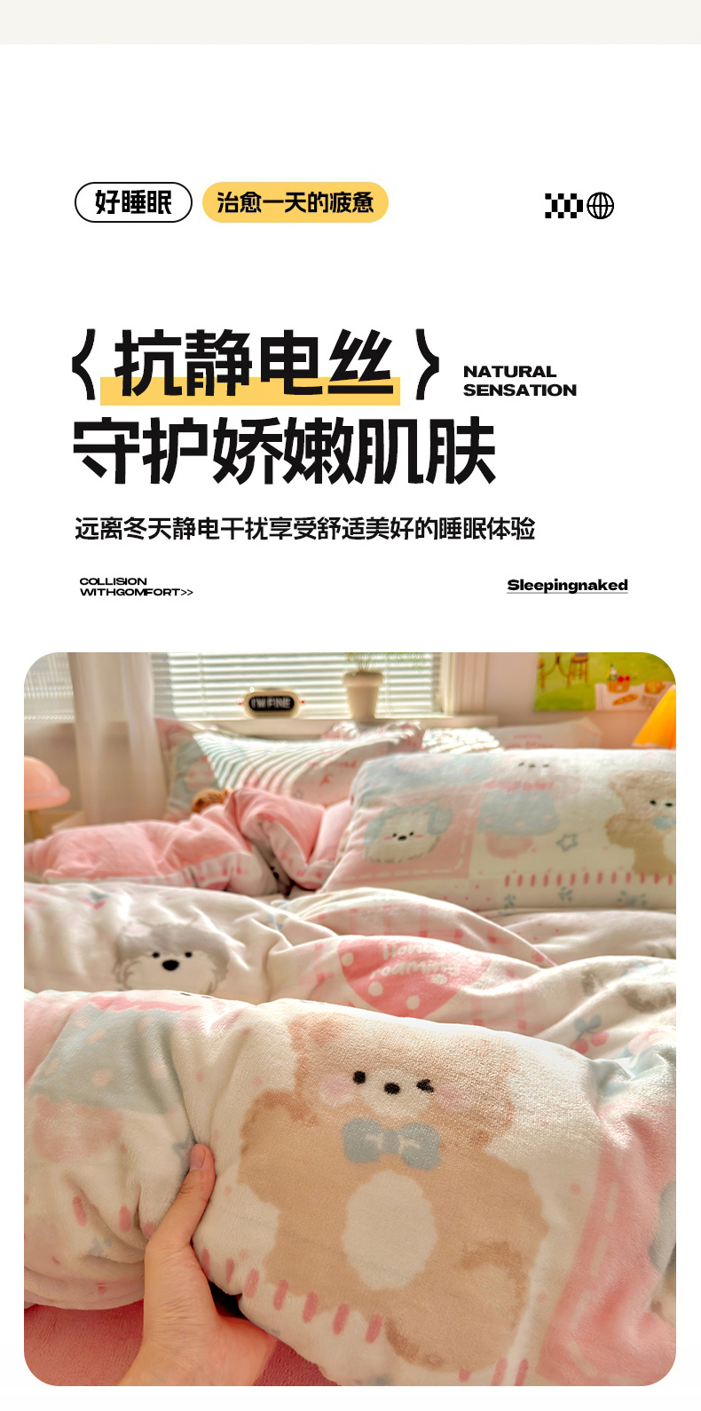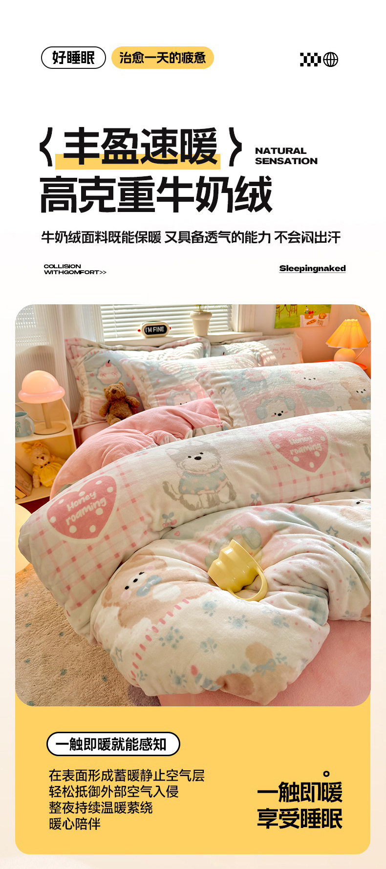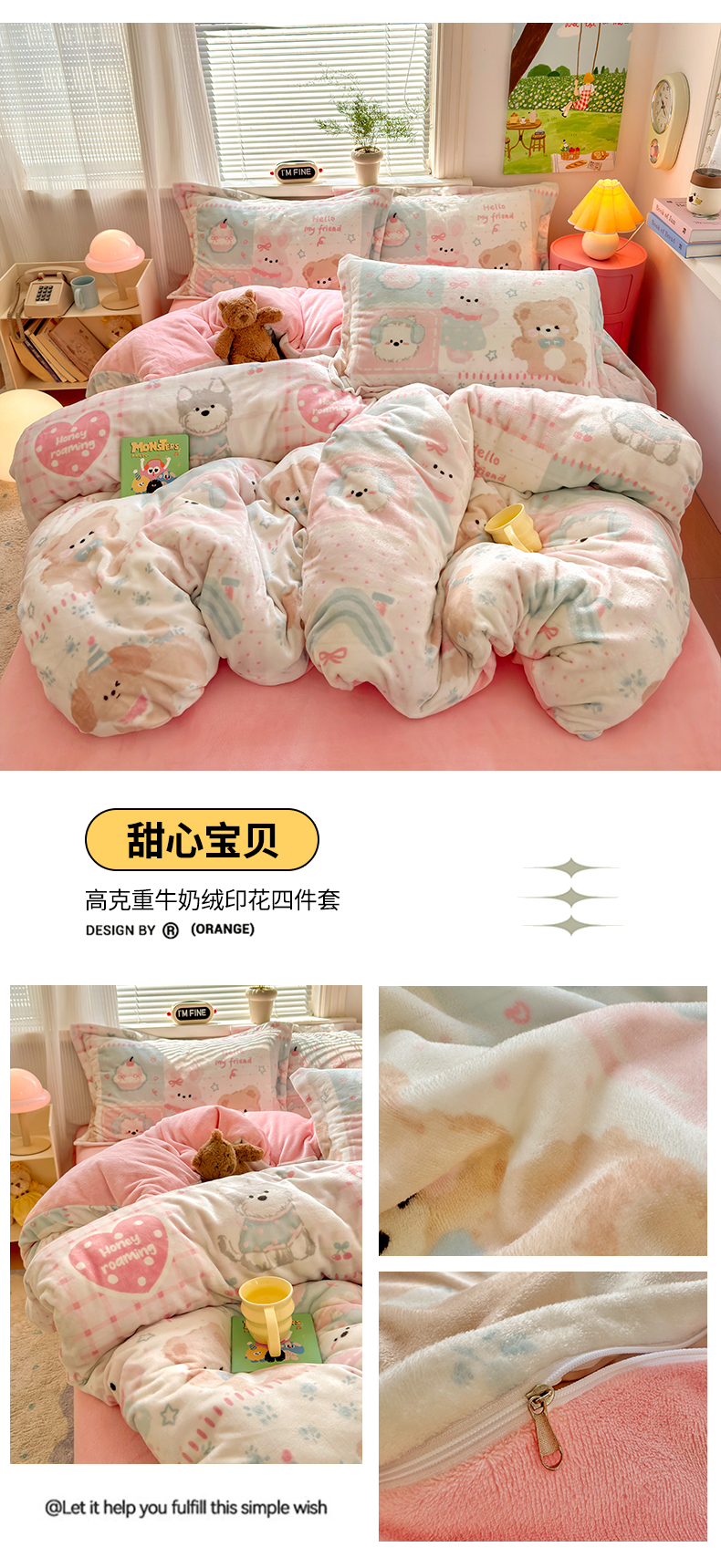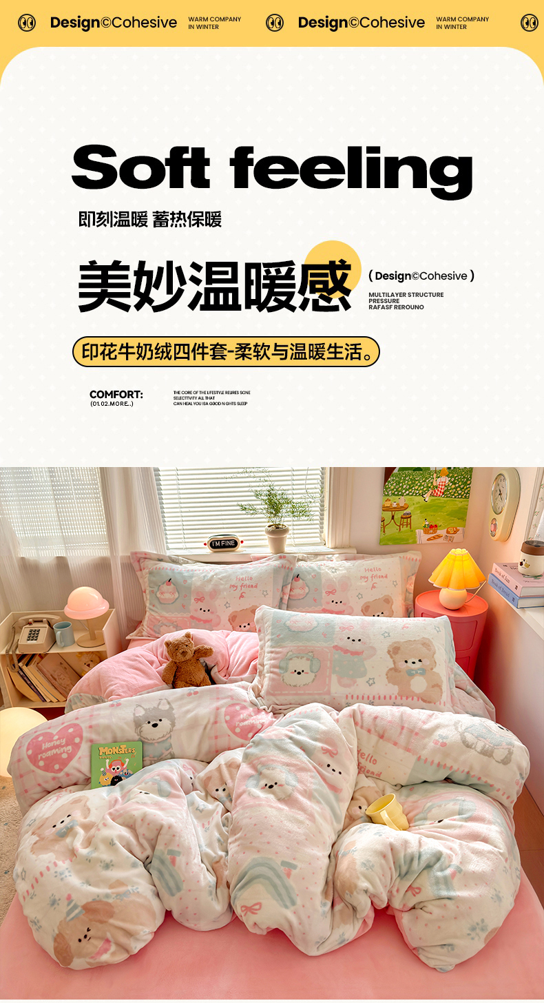 当前位置: 91家纺网 > 商品网购 > 床品套件 > 四件套 > 牛奶绒四件套 > 铭宣 2025新款高克重牛奶绒印花保暖四件套床单床笠单被套款 甜心宝贝