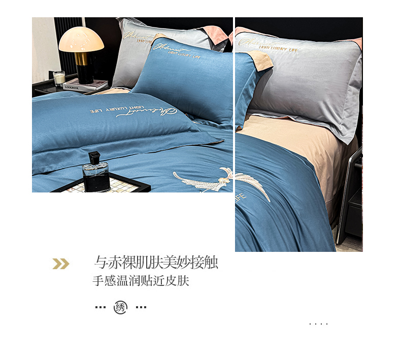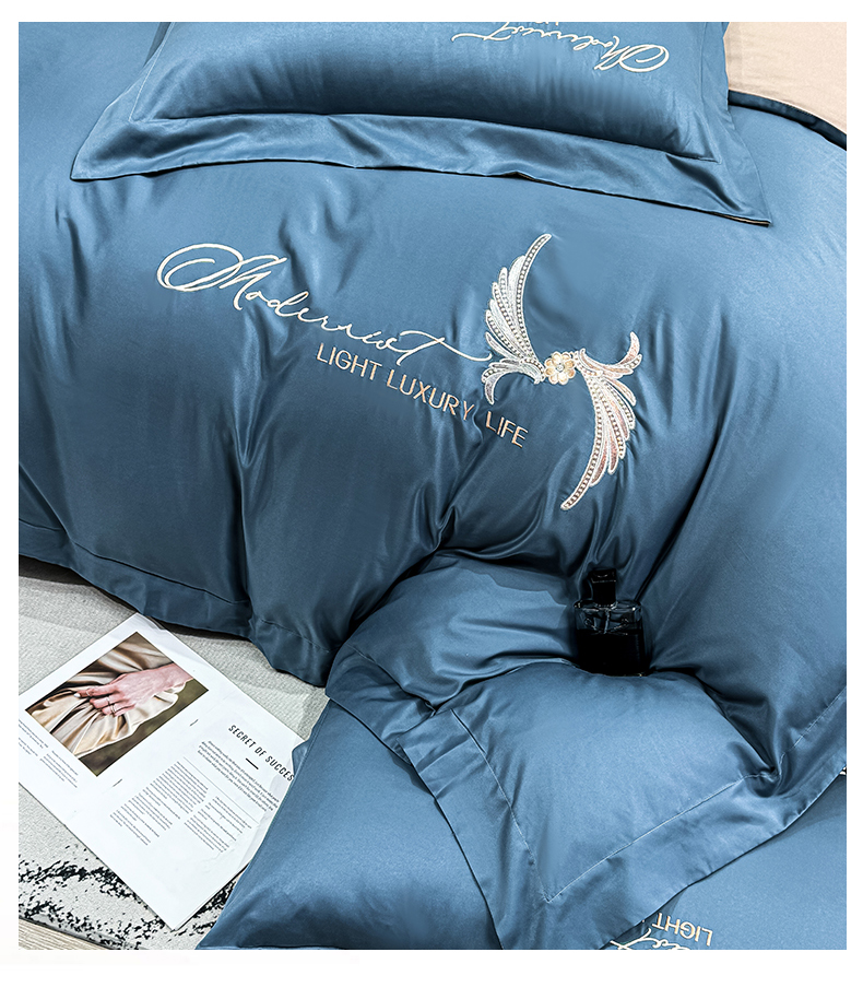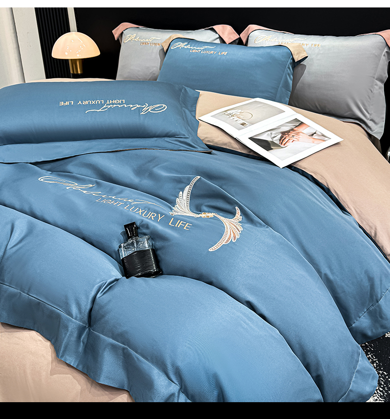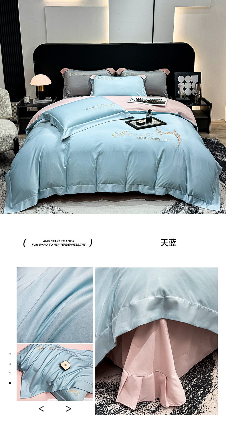 商品名称:悦织湾家纺 亲肤120克水洗棉磨毛刺绣纯色四件套2025新款轻奢韩版公主风精致床上用品绣花4件套 宽境宾利蓝