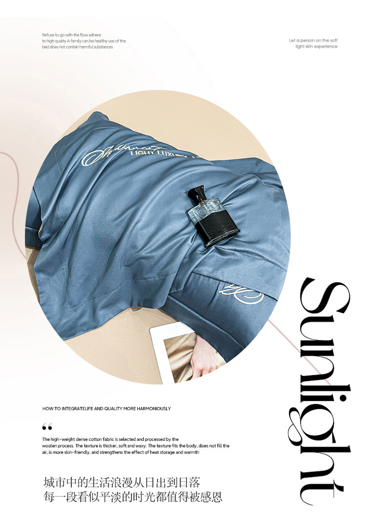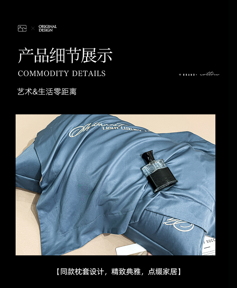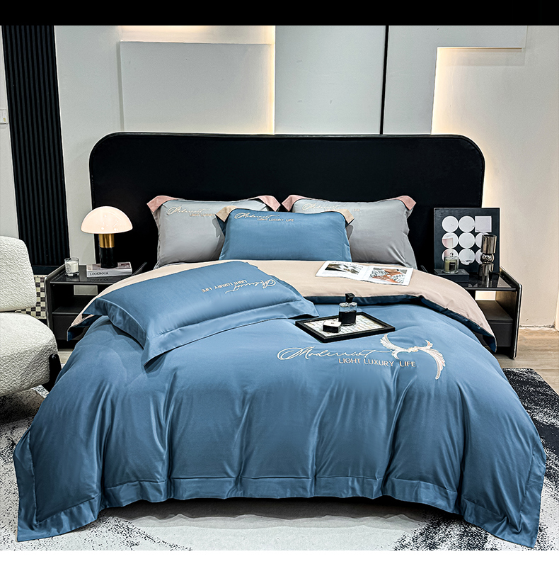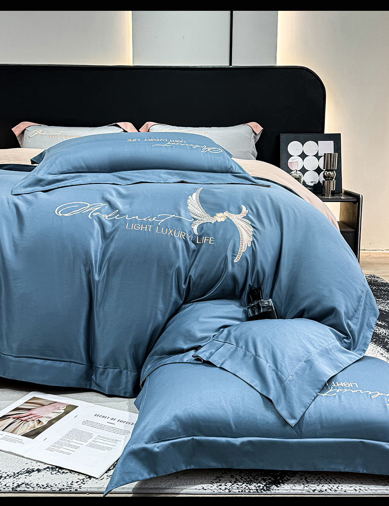 商品名称:悦织湾家纺 亲肤120克水洗棉磨毛刺绣纯色四件套2025新款轻奢韩版公主风精致床上用品绣花4件套 宽境宾利蓝