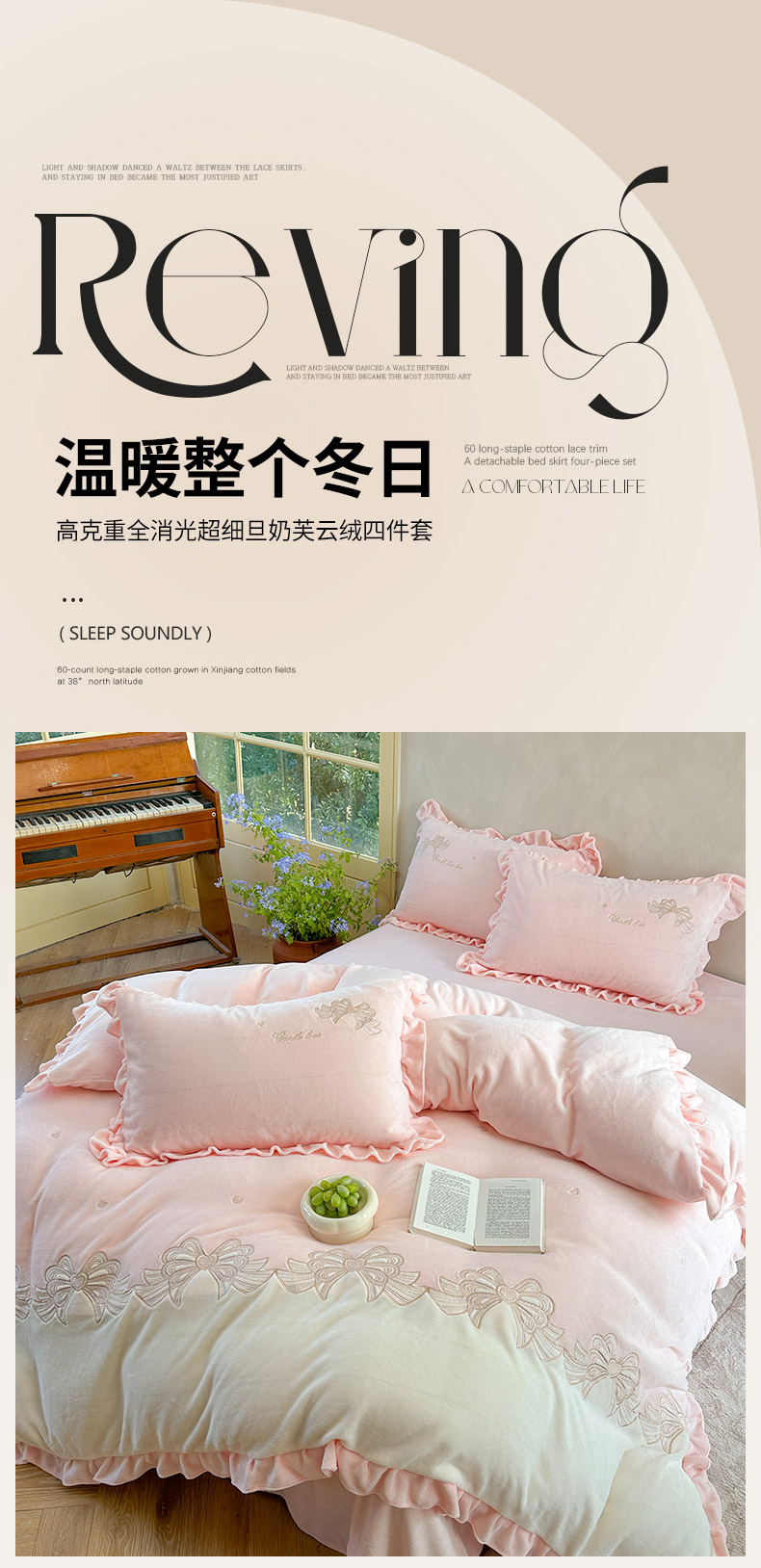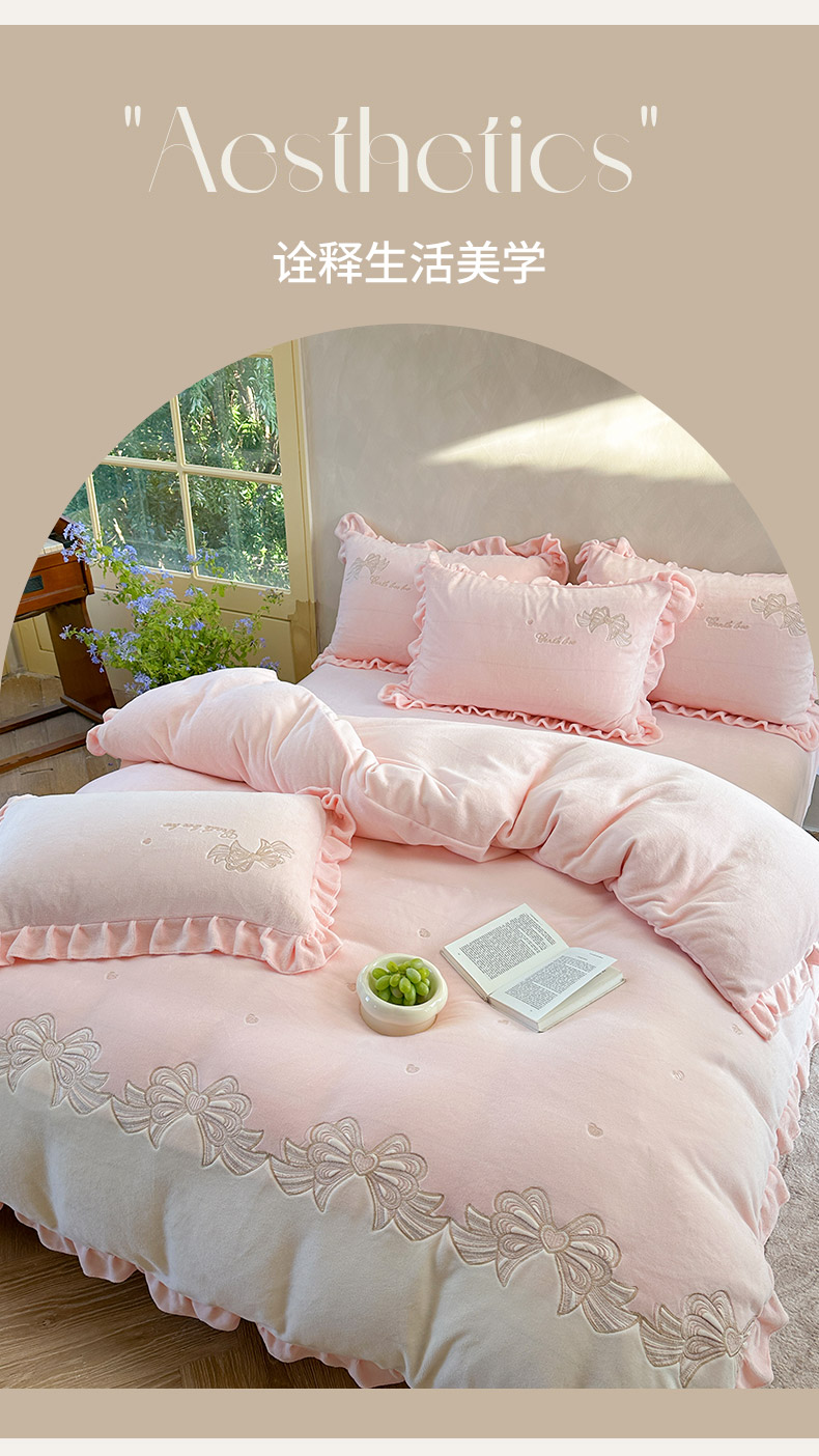 当前位置: 91家纺网 > 商品网购 > 床品套件 > 四件套 > 其它四件套 > 可以家居 2025新款高克重全消光超细旦奶芙云绒四件套-玛利亚系列-莫妮卡 莫妮卡贵族粉