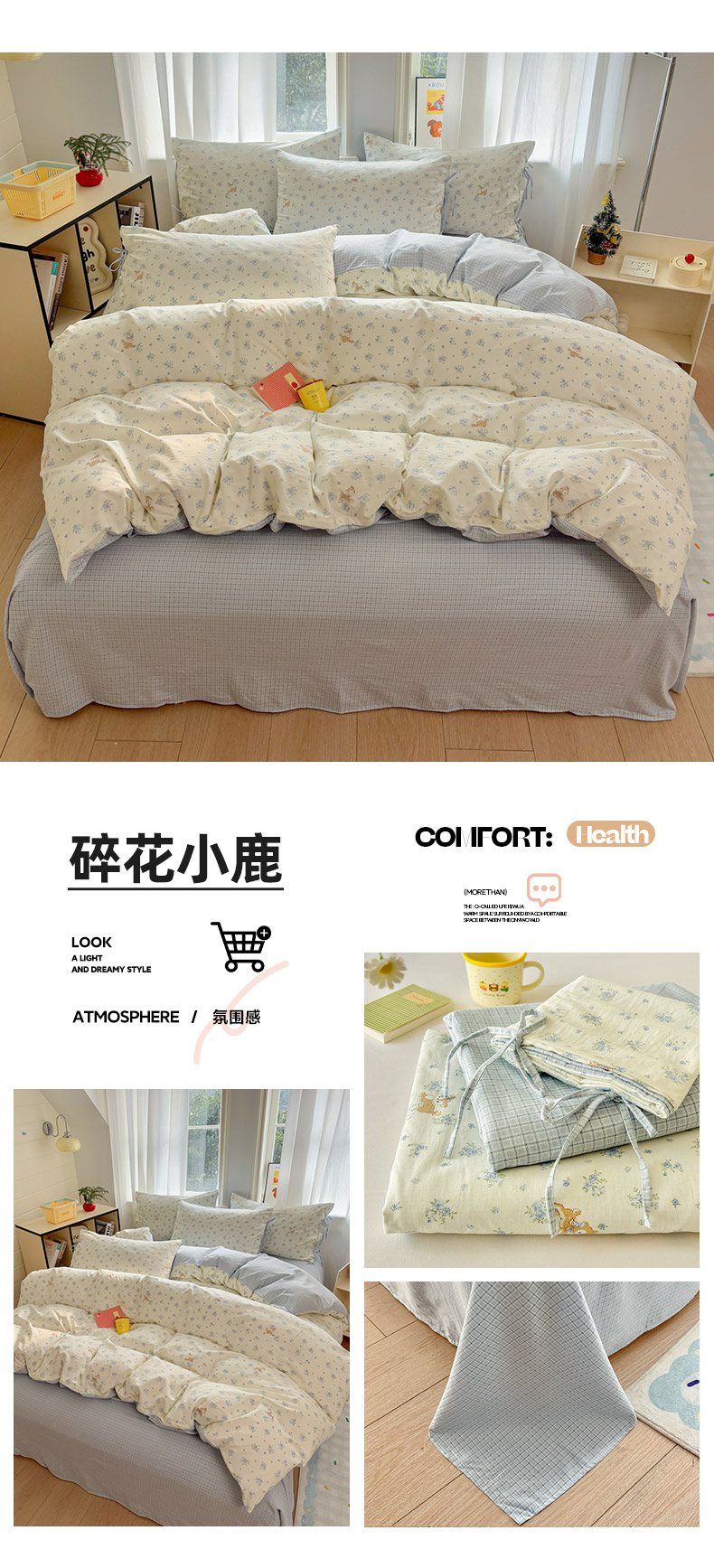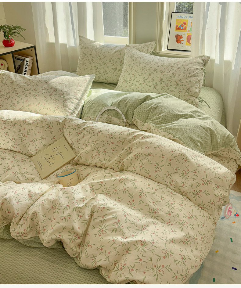 当前位置: 91家纺网 > 商品网购 > 床品套件 > 四件套 > 化纤普通四件套 > 金梦拉家纺 2026新款小清新绑带格纹碎花系列四件套-花园里系列 花园里-蝶恋花