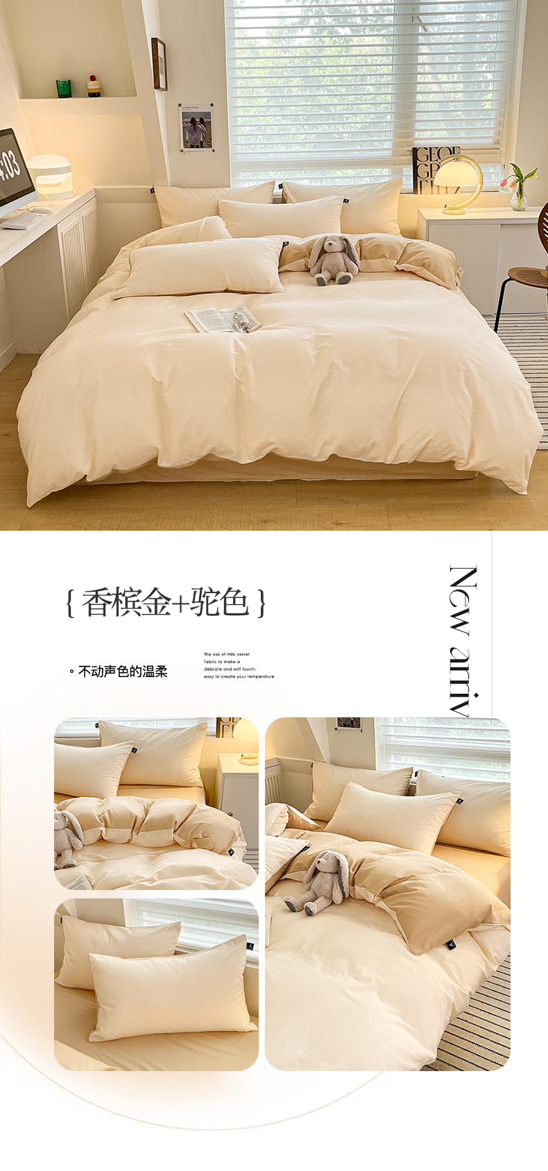 当前位置: 91家纺网 > 商品网购 > 床品套件 > 四件套 > 全棉普通四件套 > 涵宸家纺 2026新款全棉纯色四件套-米兰-场景一 米兰-香槟金+驼色