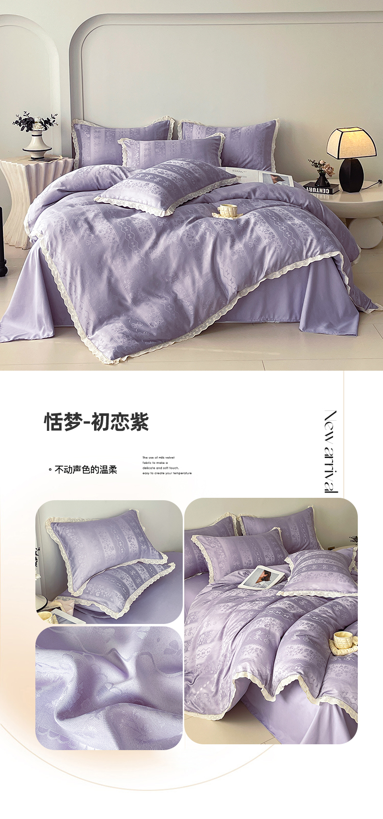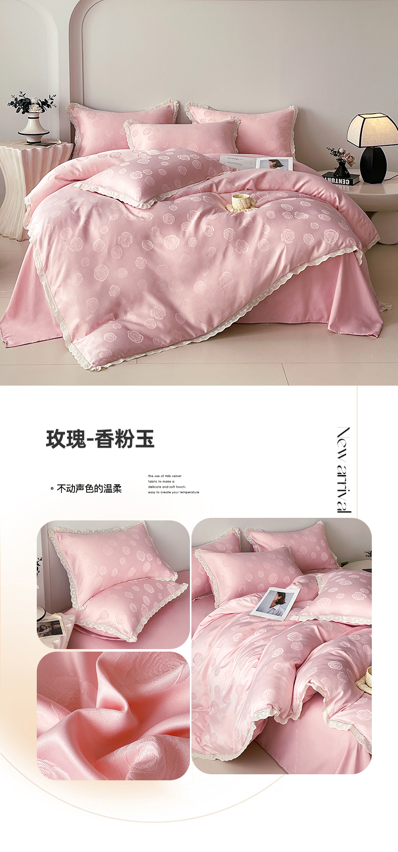 (总)大麦乐田 2026春夏新款贡缎提花花边双拼四件套