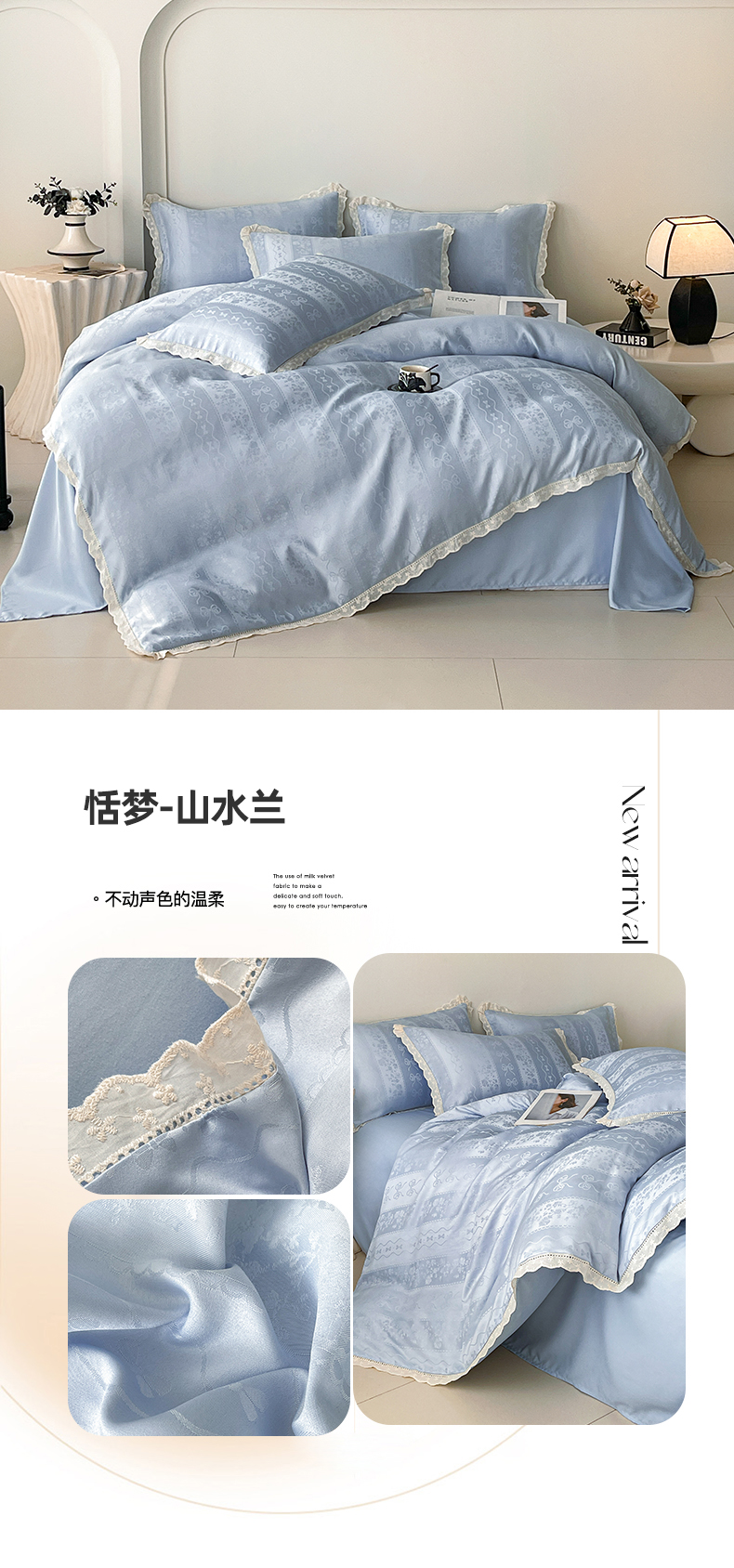 商品名称:(总)大麦乐田 2026春夏新款贡缎提花花边双拼四件套