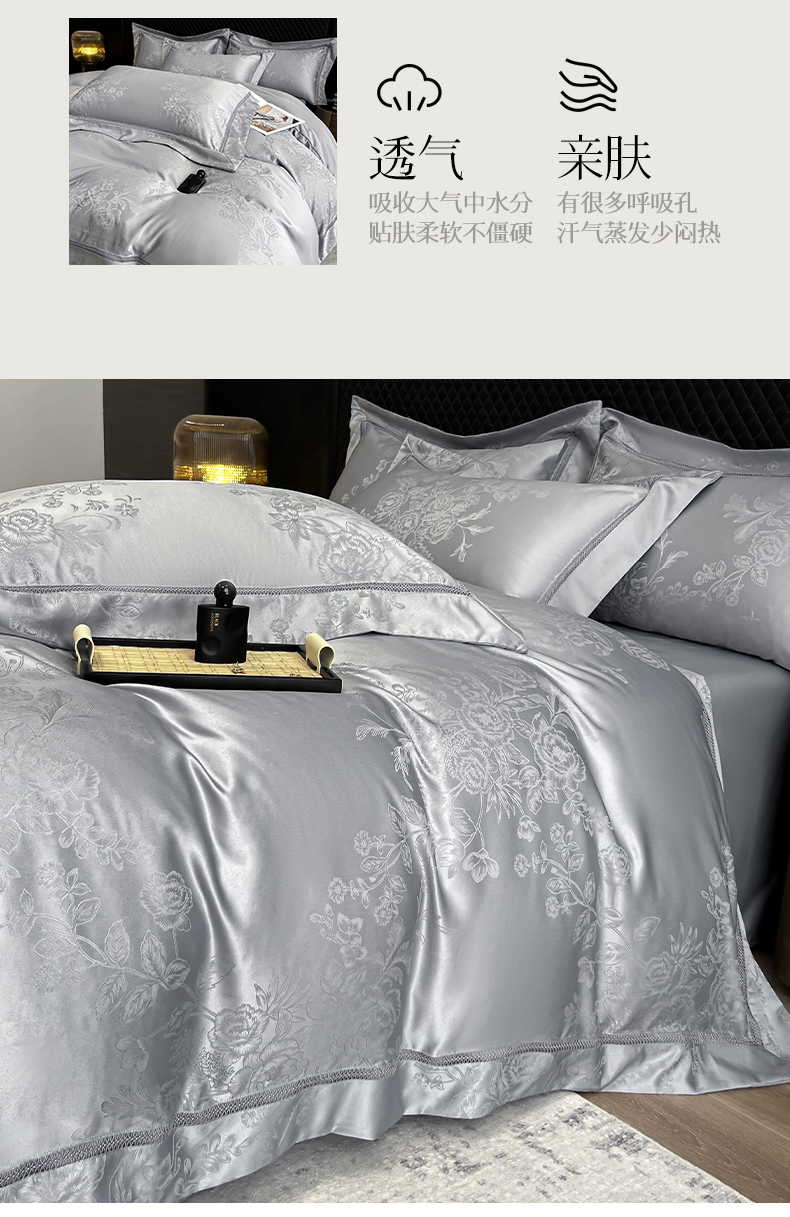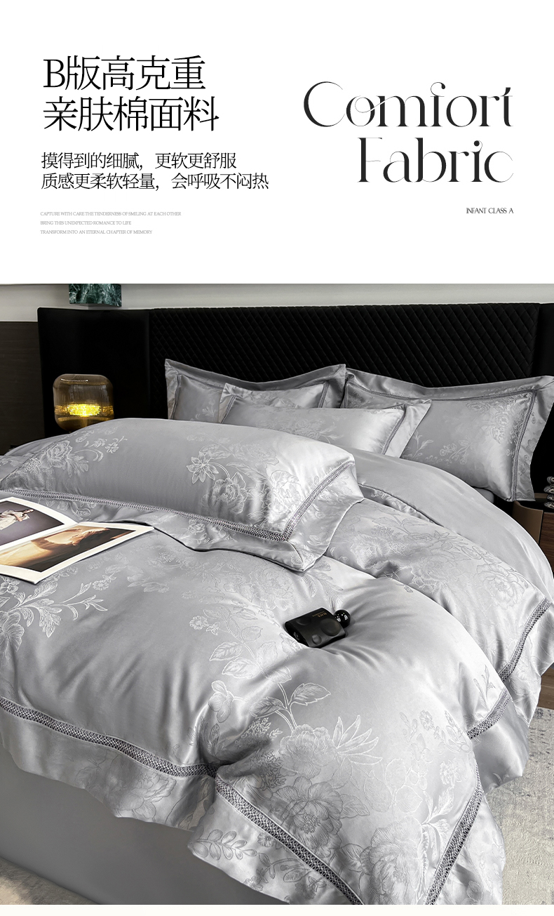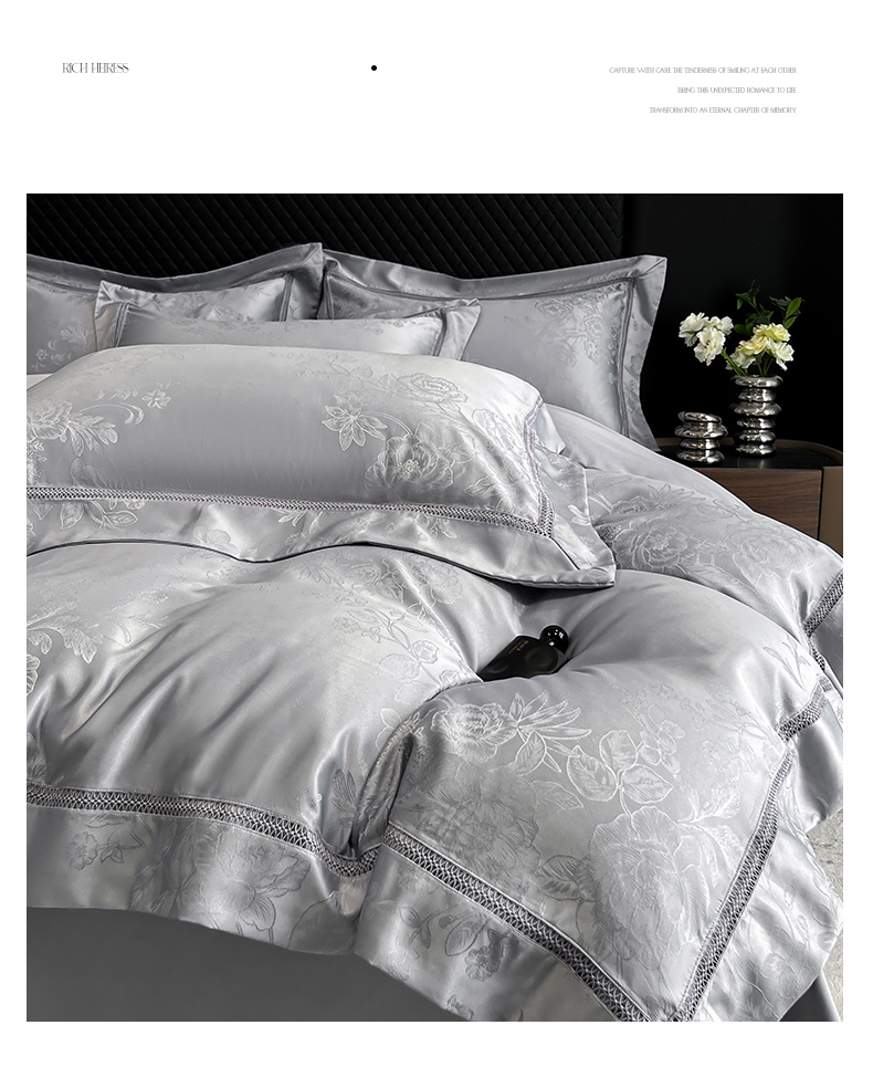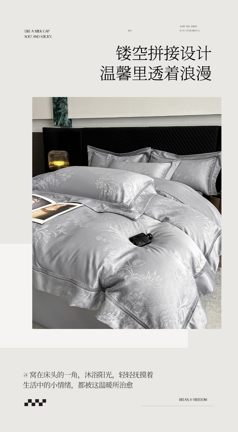 当前位置: 91家纺网 > 商品网购 > 床品套件 > 四件套 > 其它四件套 > 金牛座家纺 2026新款高精密大花位提花镂空花边床盖四件套-奥黛丽系列 奥黛丽-灰