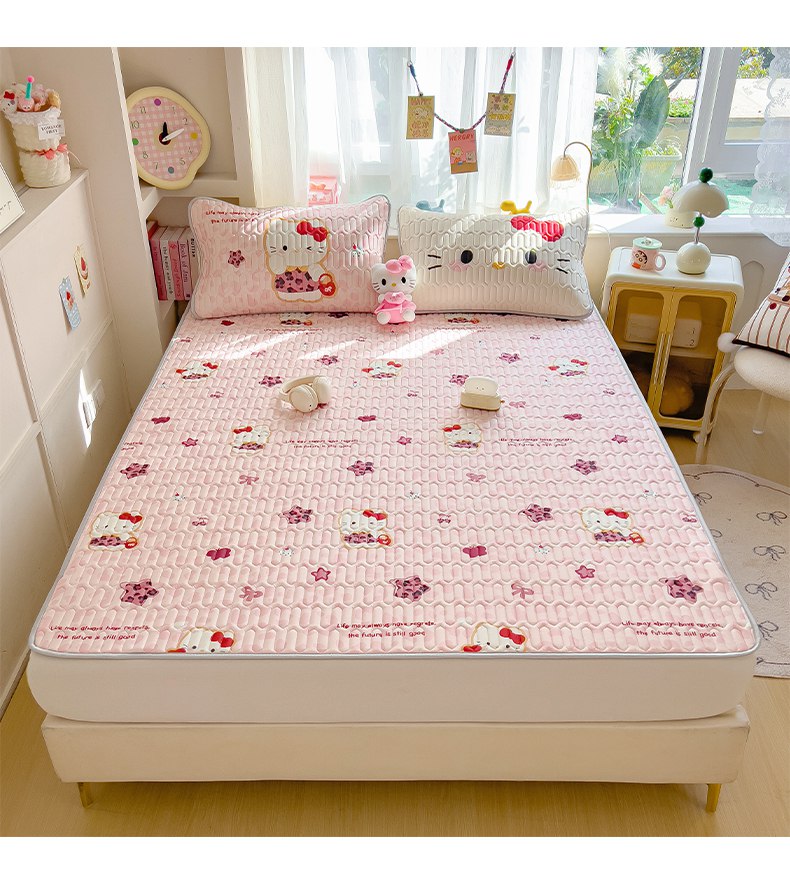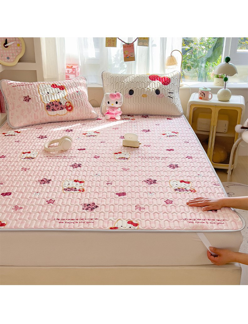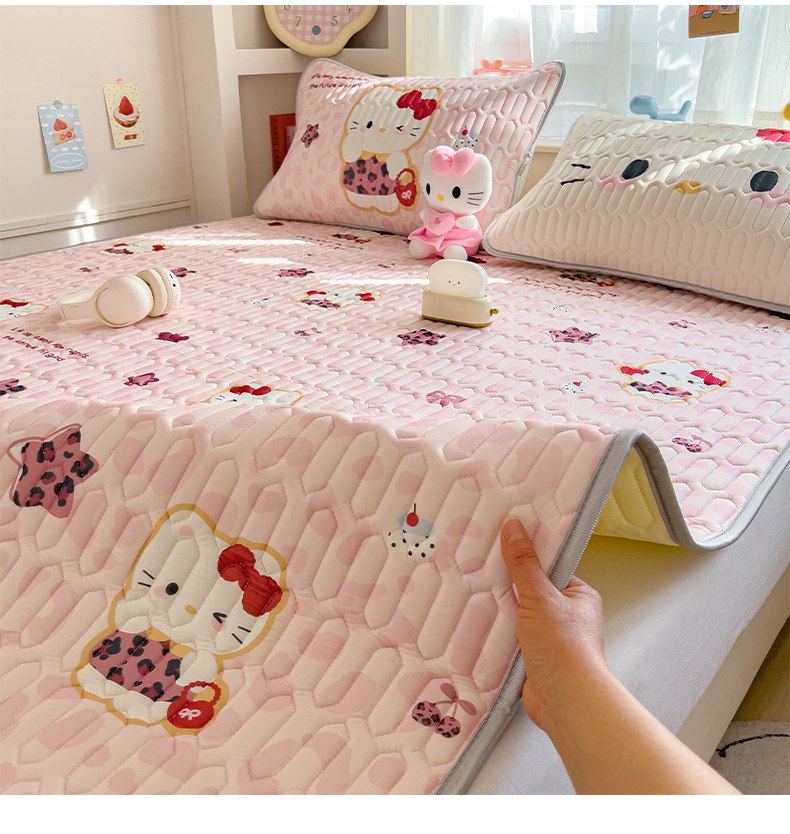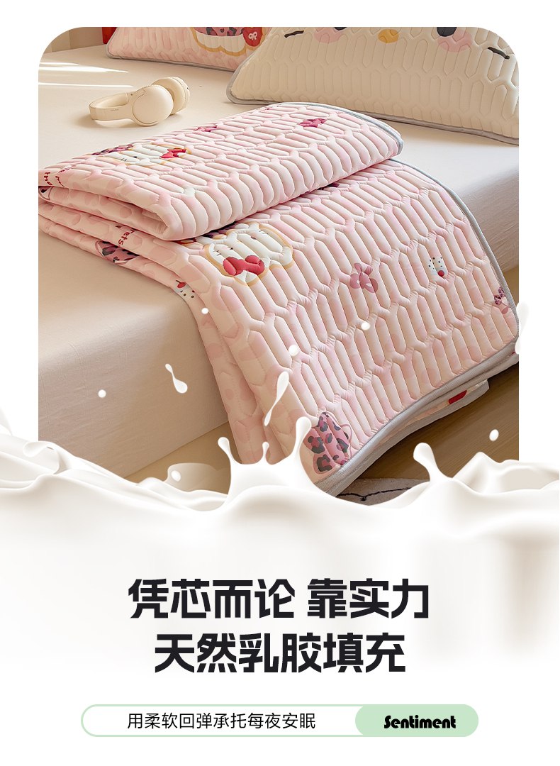 商品名称:摩妮卡 2026新款数码大版小清新乳胶凉席床席款三件套-场景二 趣巧小猫咪-粉