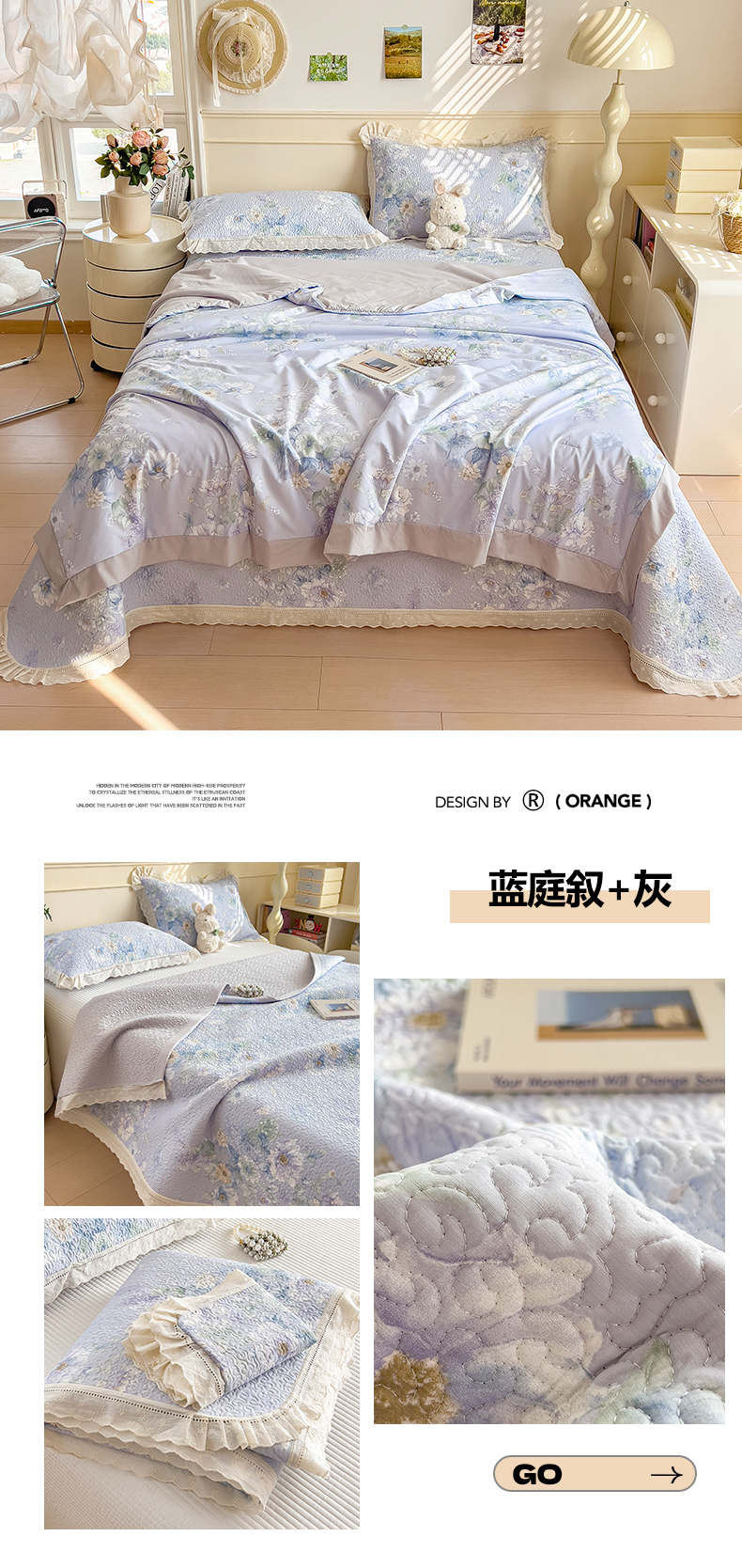 • 91家纺网 家纺一手货源 找家纺 (总)叠派家纺 2026新款A类印花慕丝绵花边款床盖系列(抽空压缩可供跨境)提供买家秀,莫兰迪+浅紫,洛可可+粉,蓝庭叙+灰,锦芙+驼,金兰+黄,凡尔赛+粉,蓝漪+蓝,洛雅+黛紫,墨芳+灰,清漫+绿,波点序章+驼,青妍+粉,星心兔语+粉,熊兔叙+蓝,云菇森林+浅紫,木马童谣+灰,蛋糕熊+绿,甜梦熊+浅粉