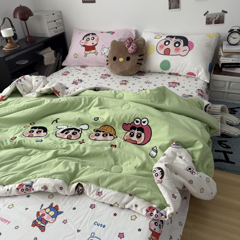 当前位置: 91家纺网 > 商品网购 > 被子 > 夏被 > 三元色 2026新款正版蜡笔小新卡通云朵棉夏被夏凉被 夏被百变小新-绿