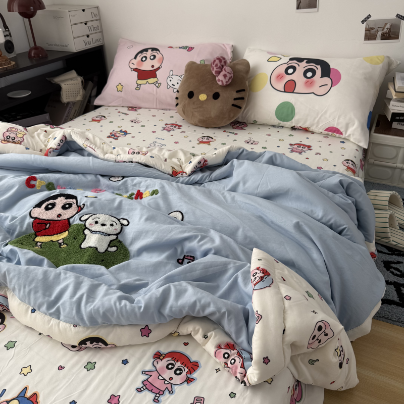 (总)三元色 2026新款正版蜡笔小新卡通云朵棉夏被夏凉被,夏被夏日小新-蓝,夏被百变小新-绿,夏被波点小新-黄,夏被气球小新-紫,夏被睡衣小新-粉