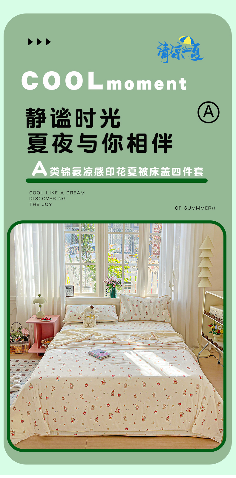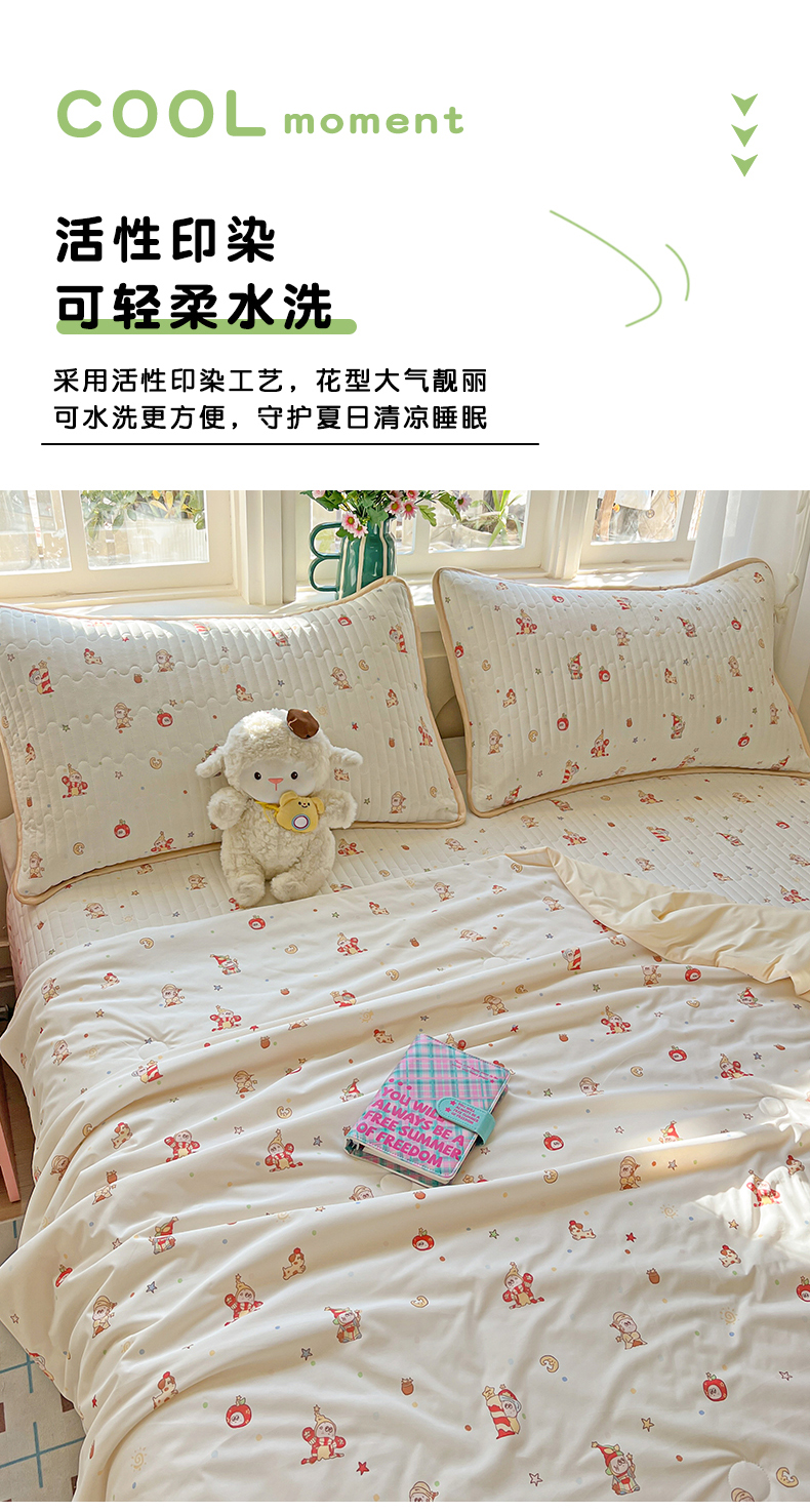 当前位置: 91家纺网 > 商品网购 > 床品套件 > 四件套 > 夏被四件套 > 卡普二店 2026新款A类锦氨凉感印花夏被四件套床盖凉席款--四件套 星星人