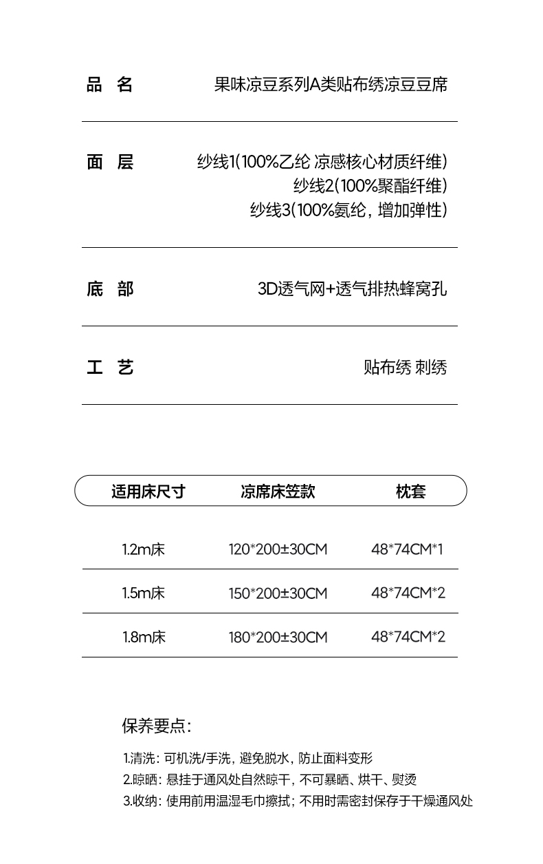 商品名称:三味舒屋 2026新款果味凉豆系列PE凉豆豆床笠款软席席子 果小熊