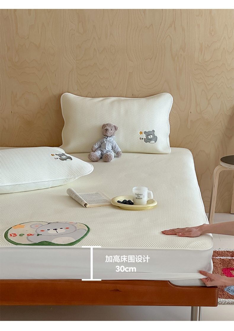 三味舒屋 2026新款果味凉豆系列PE凉豆豆床笠款软席席子 果小熊