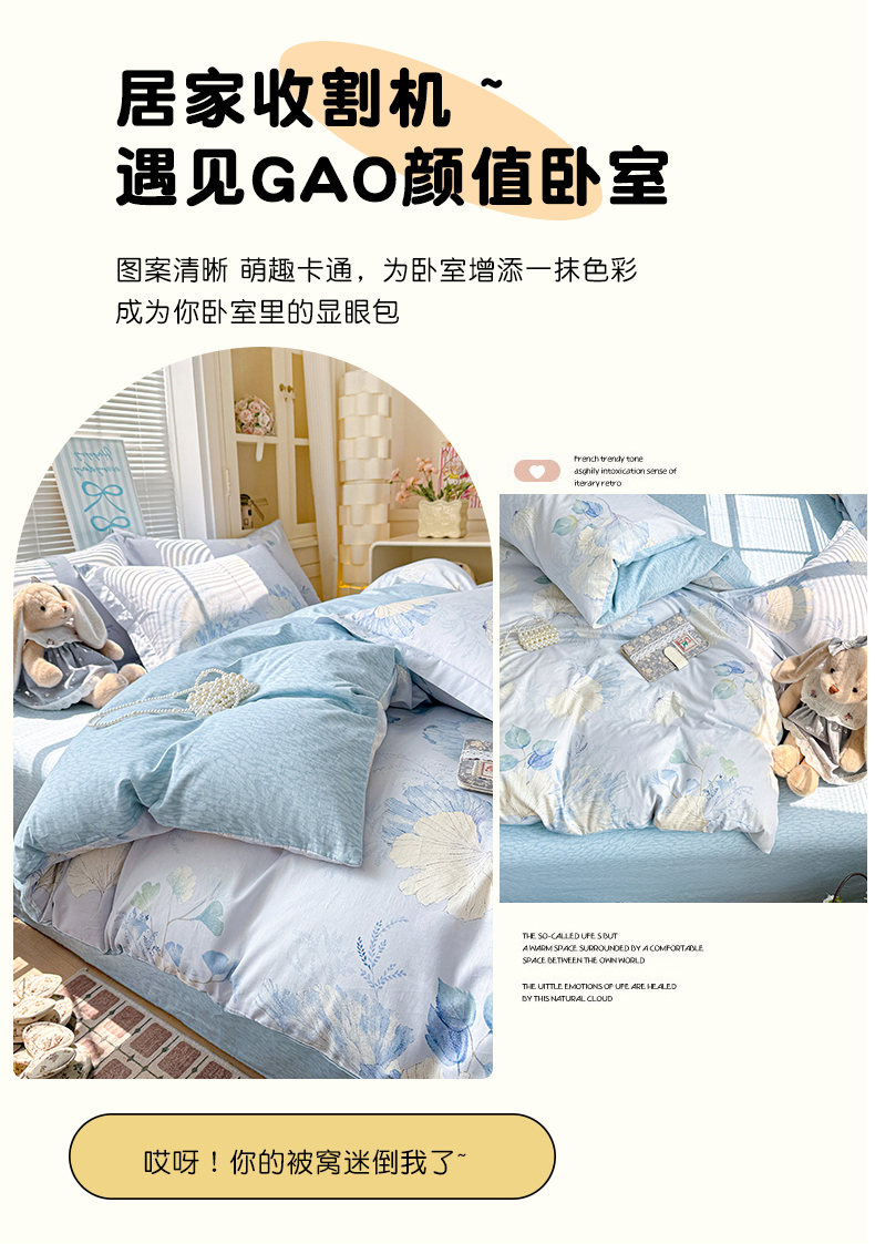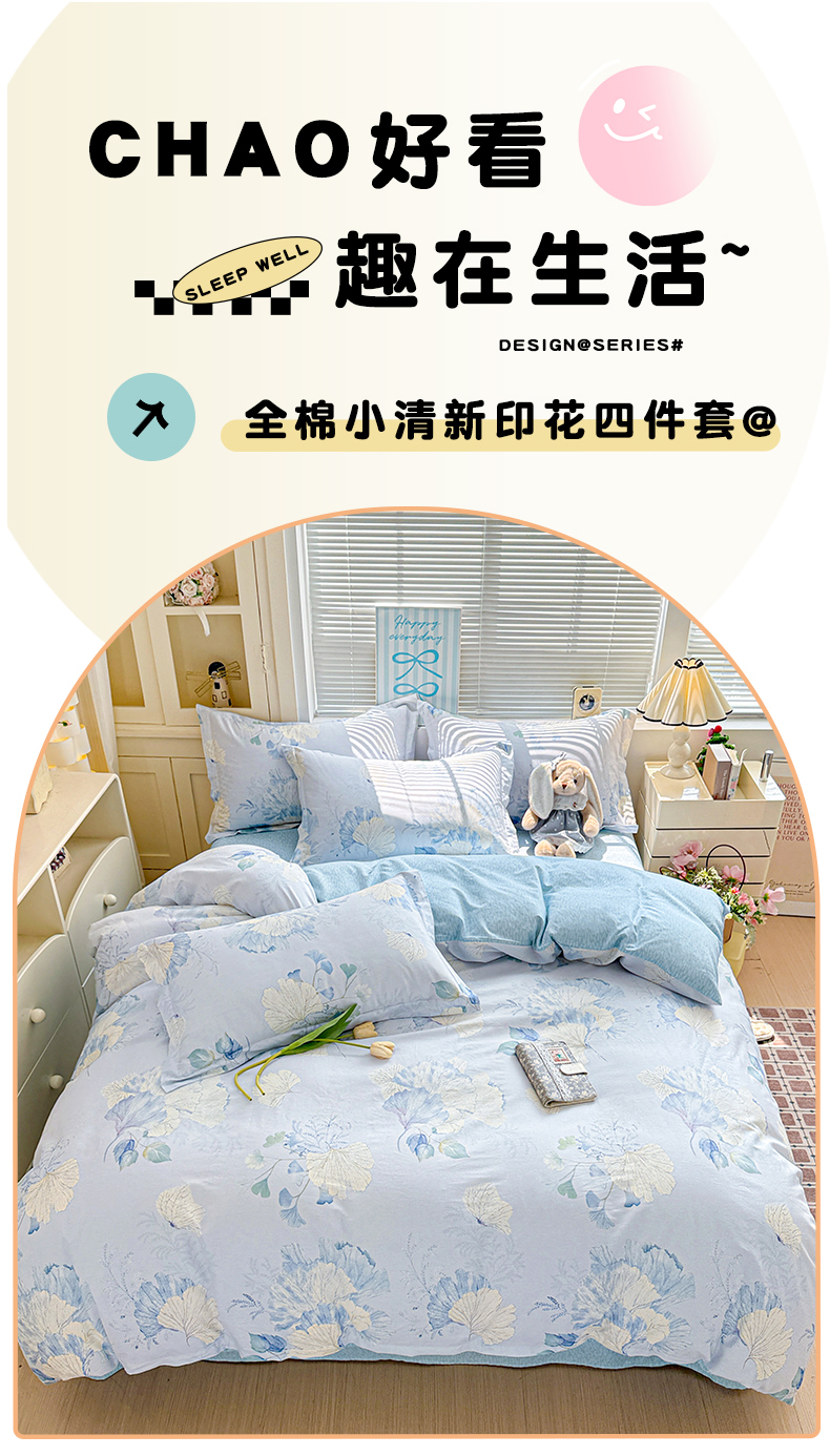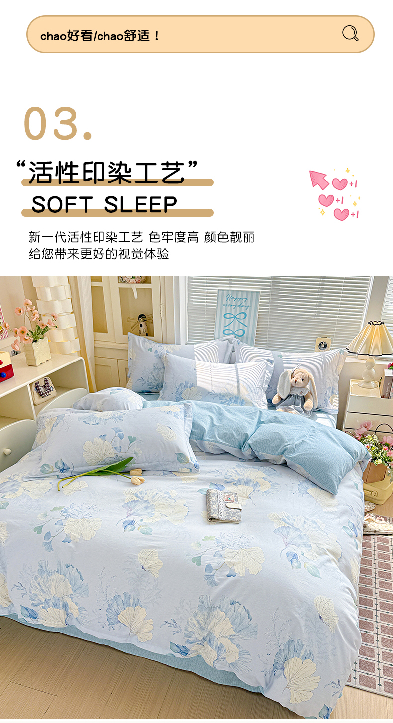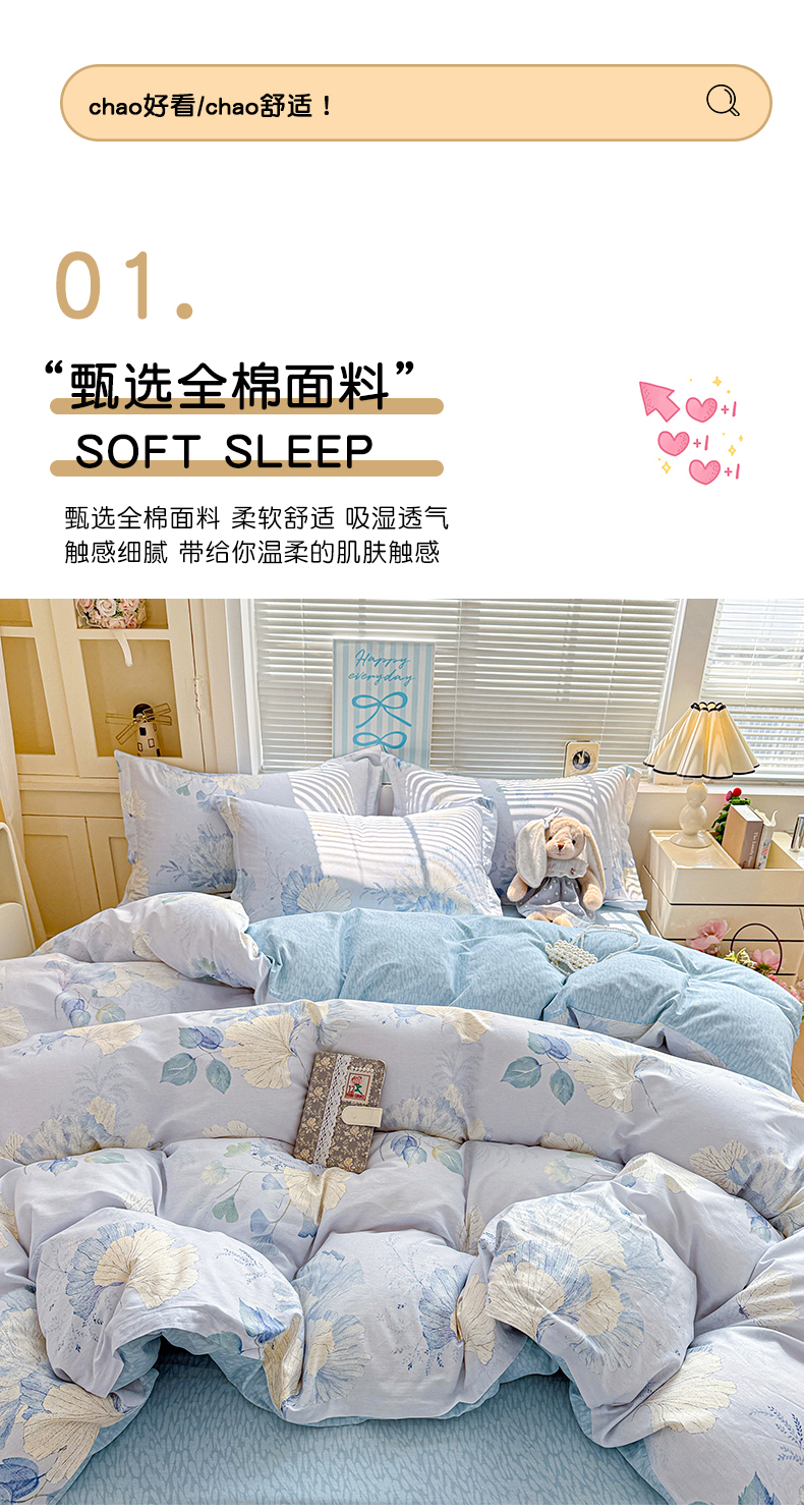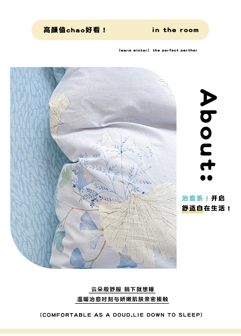 当前位置: 91家纺网 > 商品网购 > 床品套件 > 四件套 > 全棉普通四件套 > 董成龙家纺 2026春夏新款100%全棉纯棉印花四件套印花卡通系列三件套(喷气工艺) 银杏花语