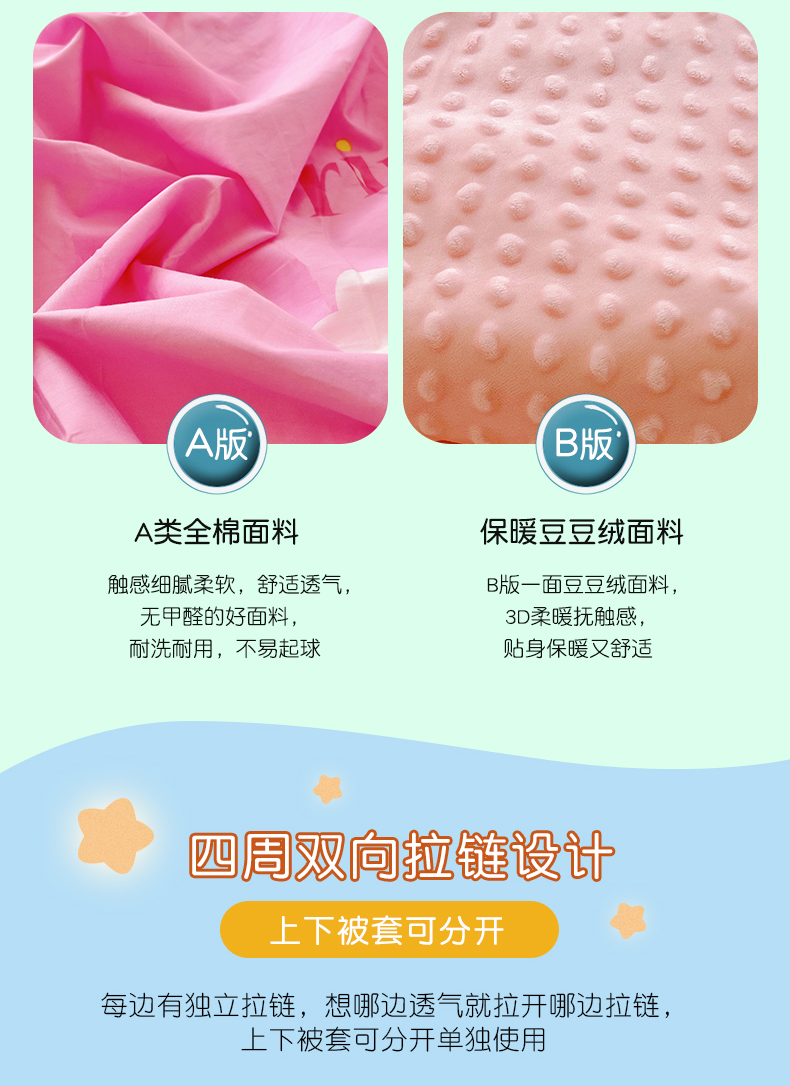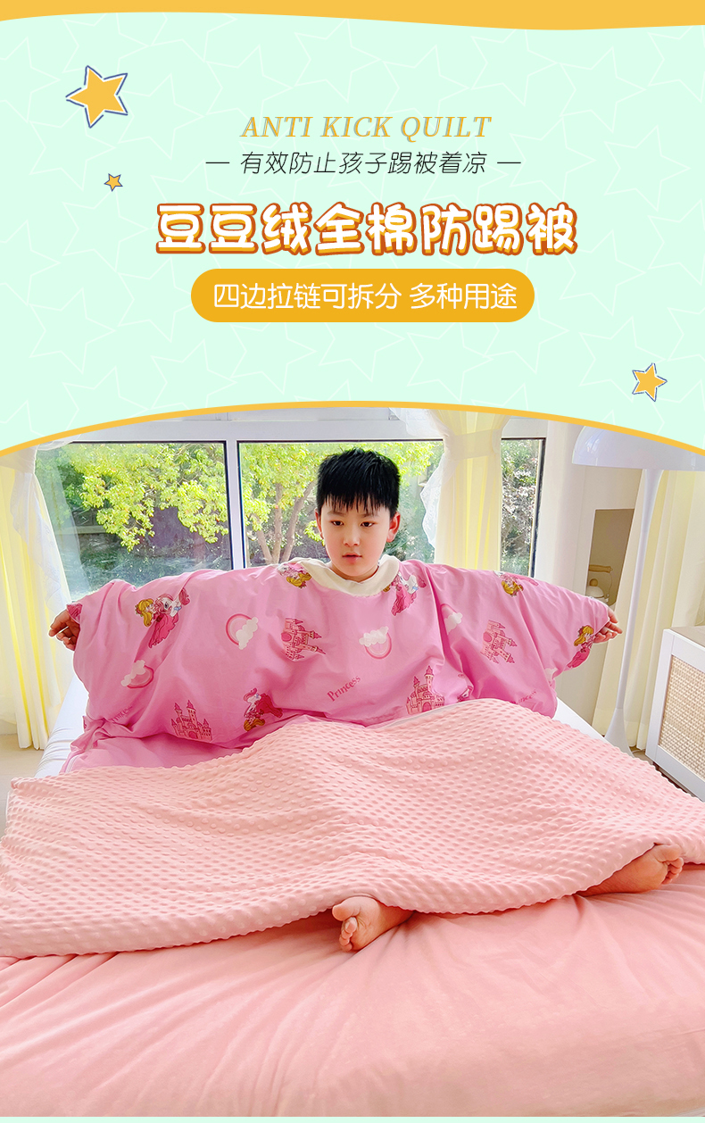 • 91家纺网 家纺一手货源 找家纺 萌朵家纺 2025新款豆豆绒全棉防踢被-结合牛奶绒绒防踢被 满天星,满天星