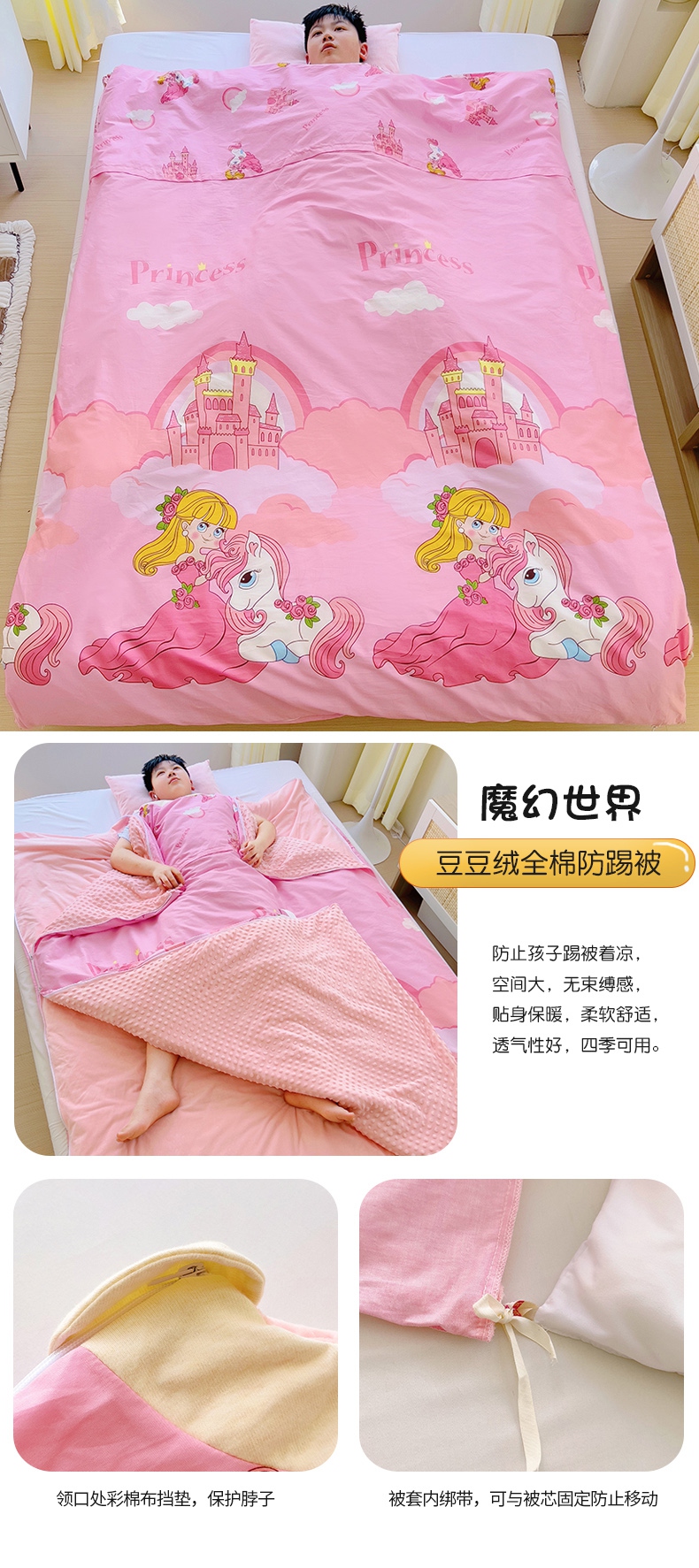 • 91家纺网 家纺一手货源 找家纺 萌朵家纺 2025新款豆豆绒全棉防踢被-结合牛奶绒绒防踢被 魔幻世界