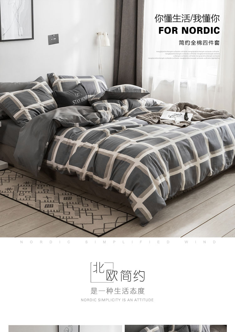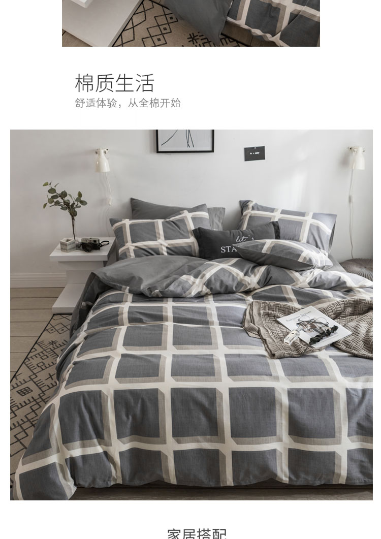 (总)梦家居 2022新款棋盘格系列全棉四件套,棋盘格-黑色,棋盘格-黄蓝,棋盘格-焦糖色,棋盘格-蓝色,棋盘格-浅黄色,棋盘格-浅咖色,棋盘格-浅绿