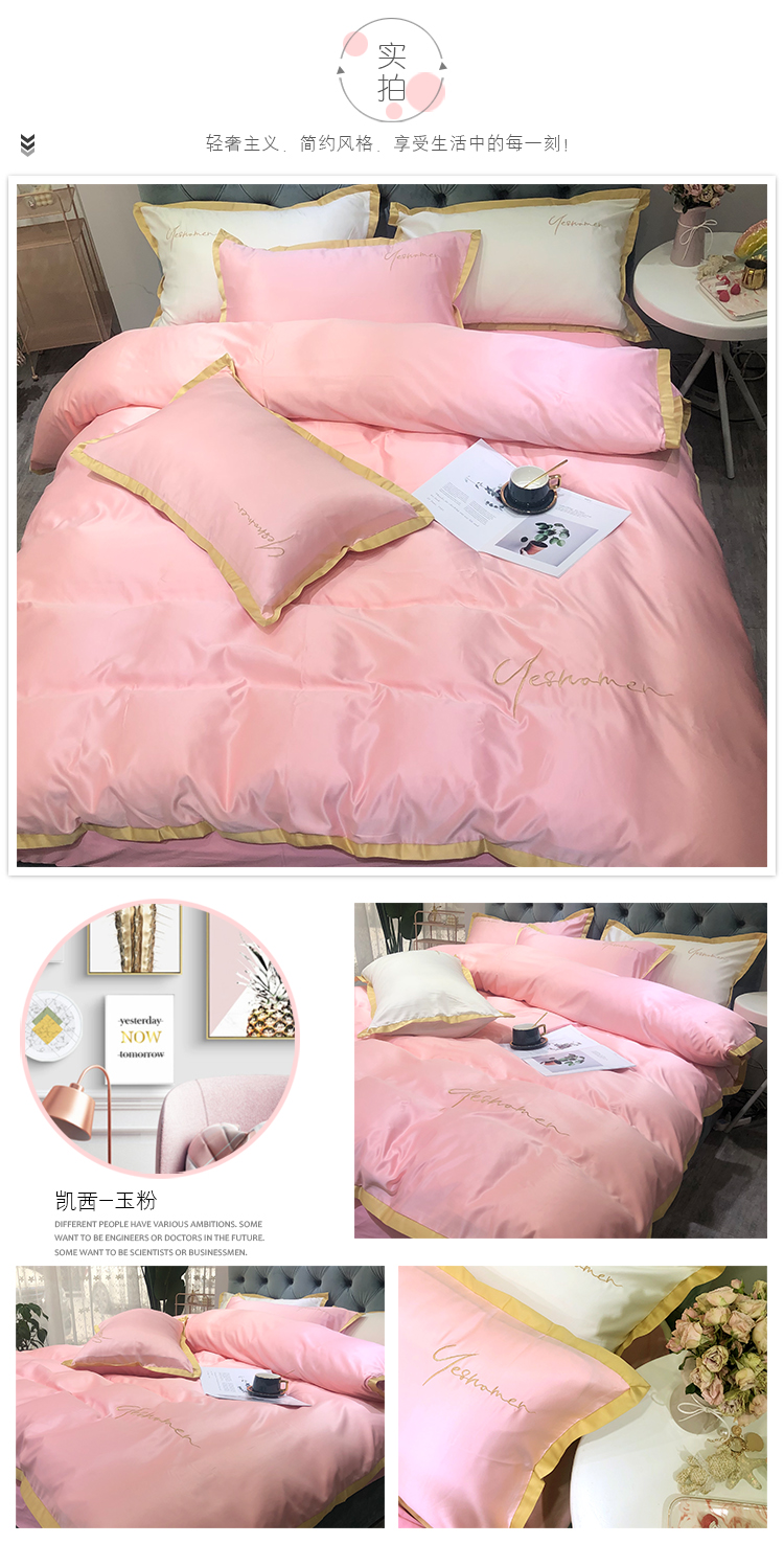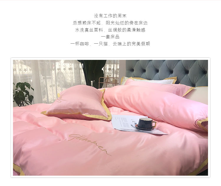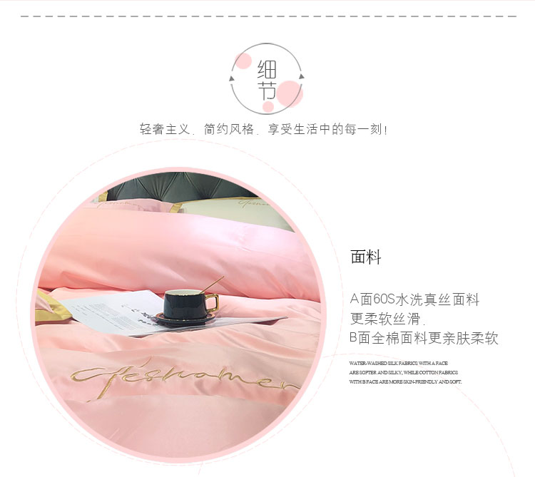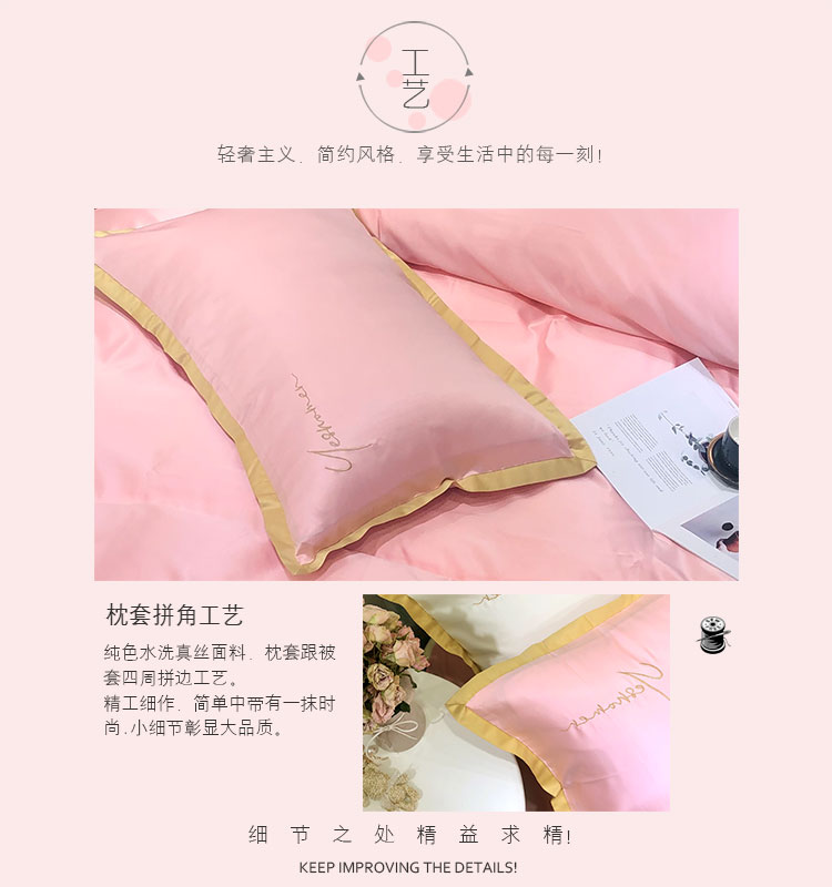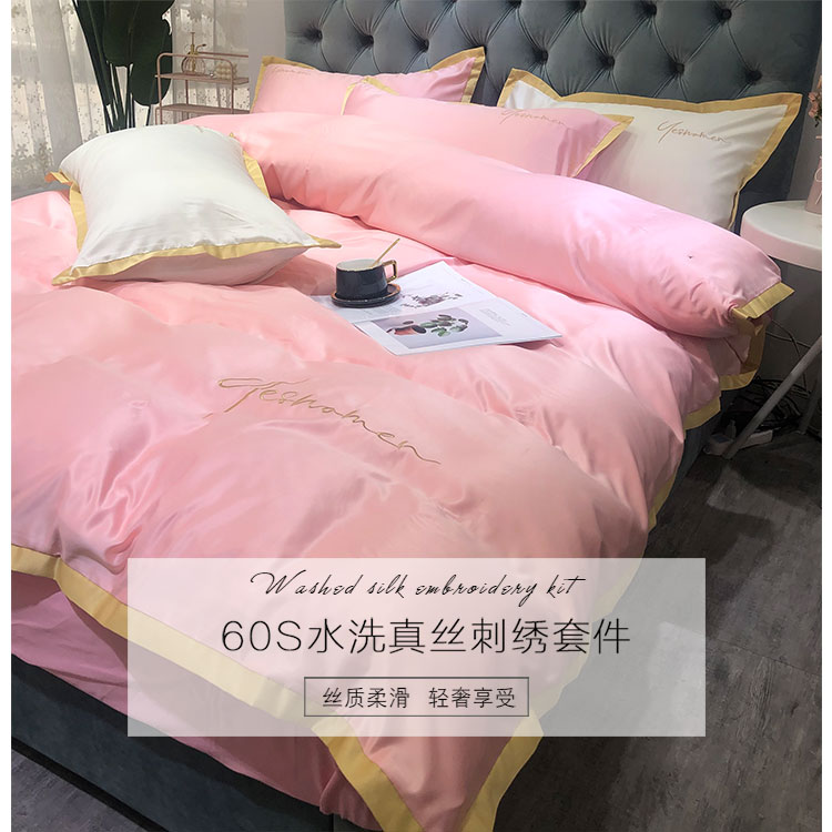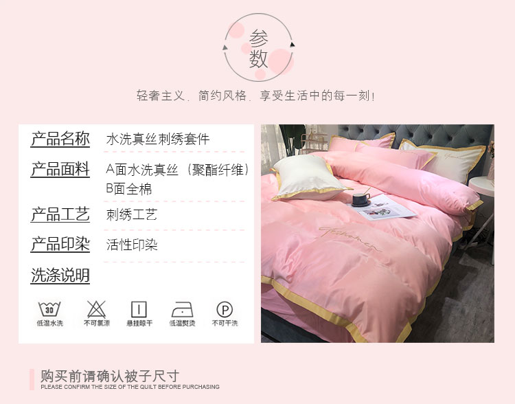 商品名称:安妮 2020新款水洗真丝凯茜四件套(实拍图) 玉粉