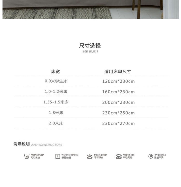 床单/床笠尺寸