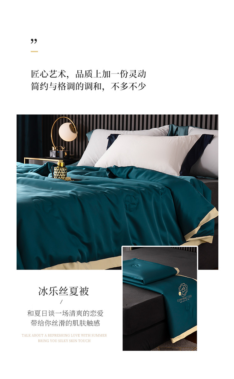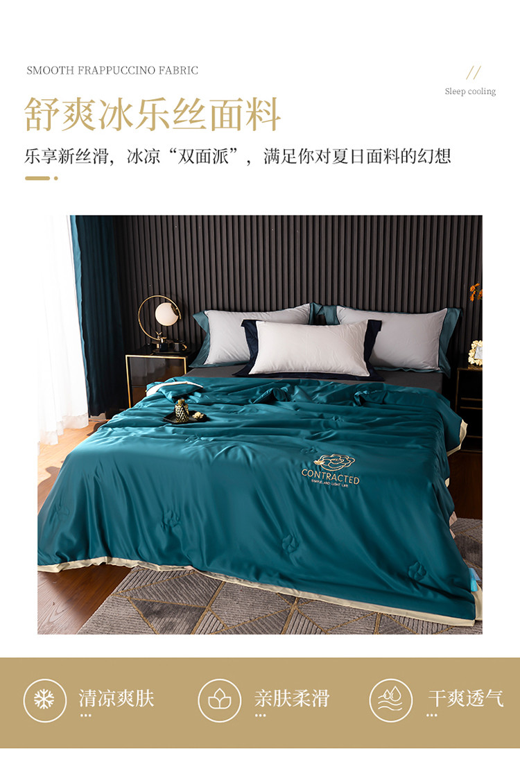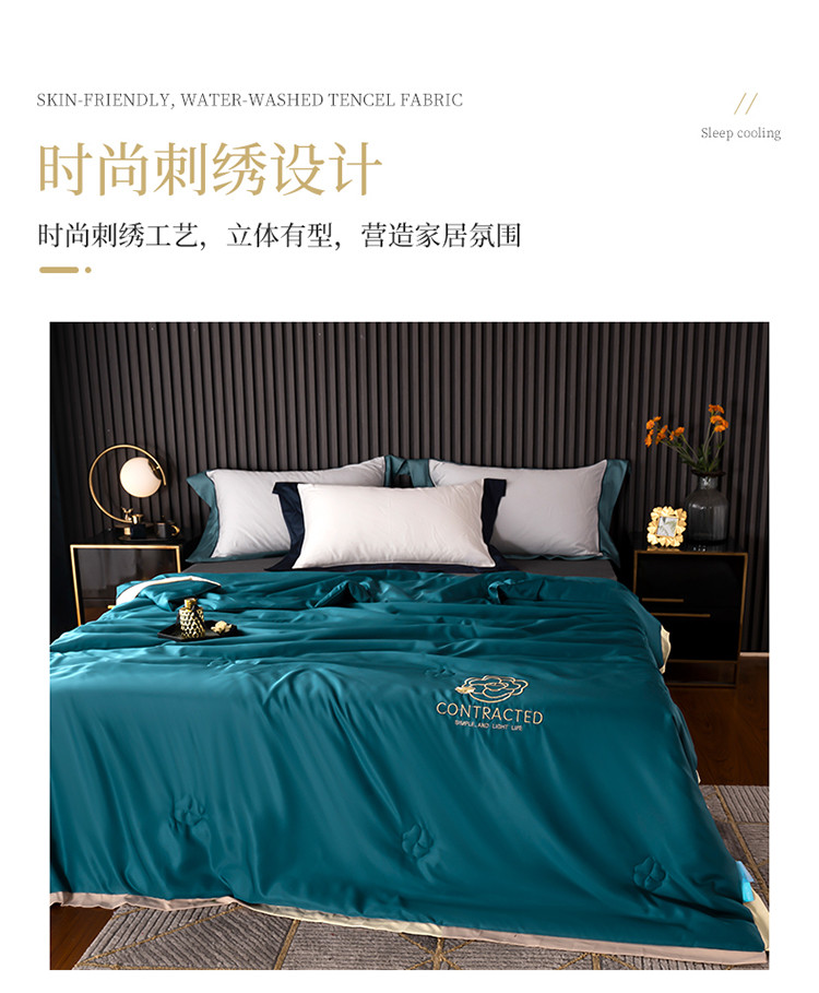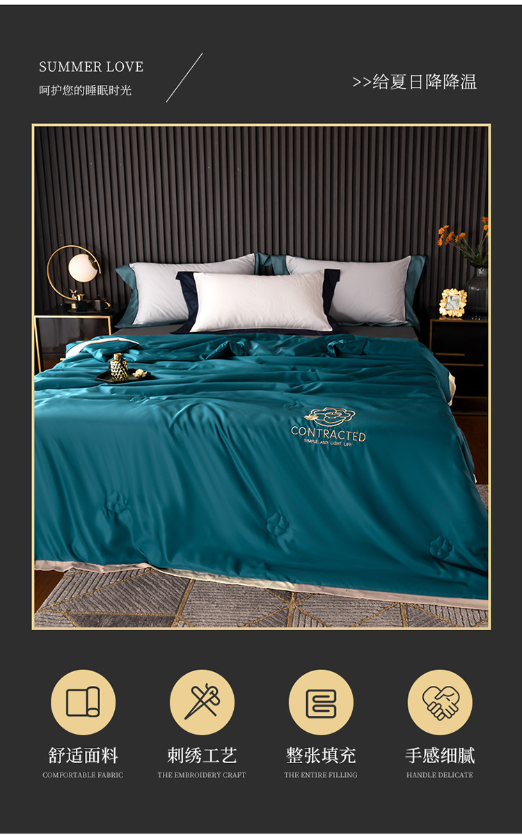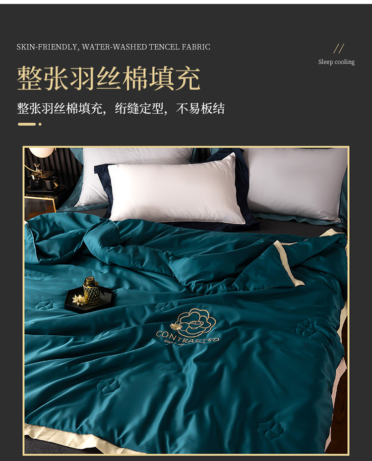 商品名称:澳萝拉 2021新款冰乐丝夏凉被 山茶花-孔雀蓝