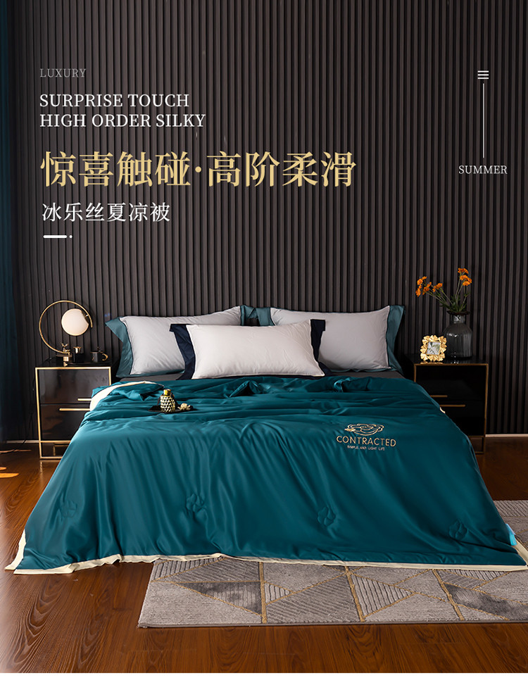 澳萝拉 2021新款冰乐丝夏凉被 山茶花-孔雀蓝