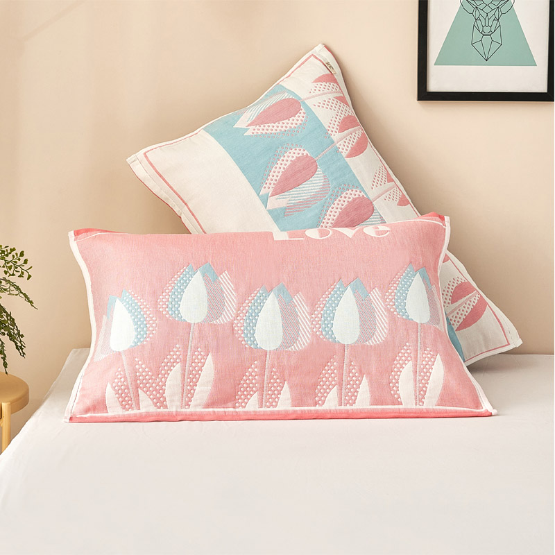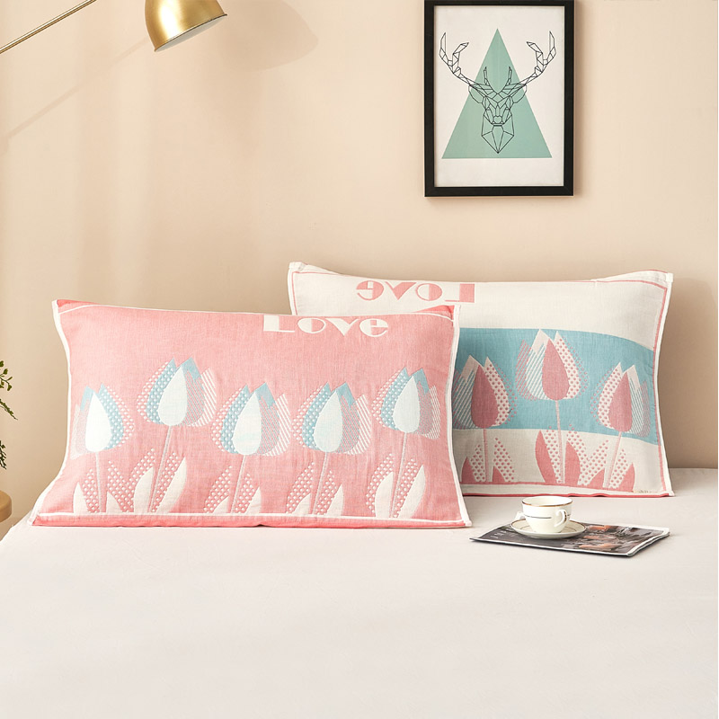 朴尔家纺新款全棉四层纱布休闲枕巾53*78cm罗曼蒂克-粉