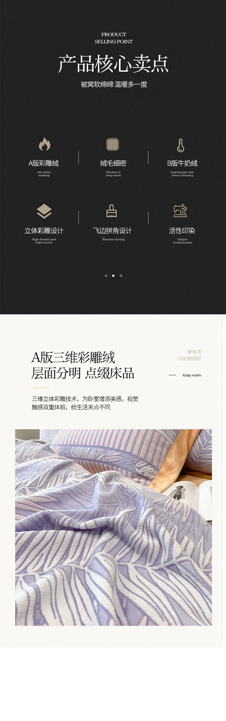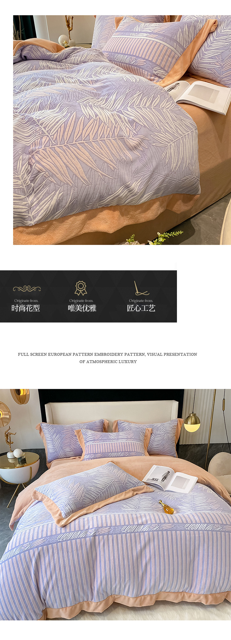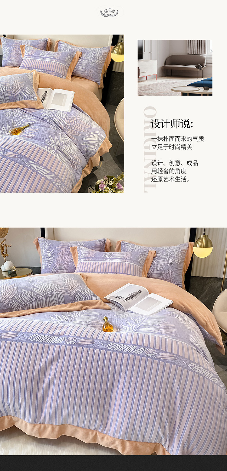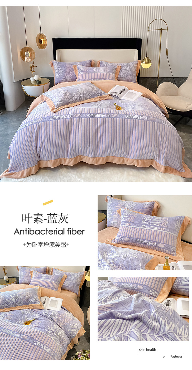 商品名称:吾秀 2021秋冬新款三维彩雕绒四件套 叶素-蓝灰