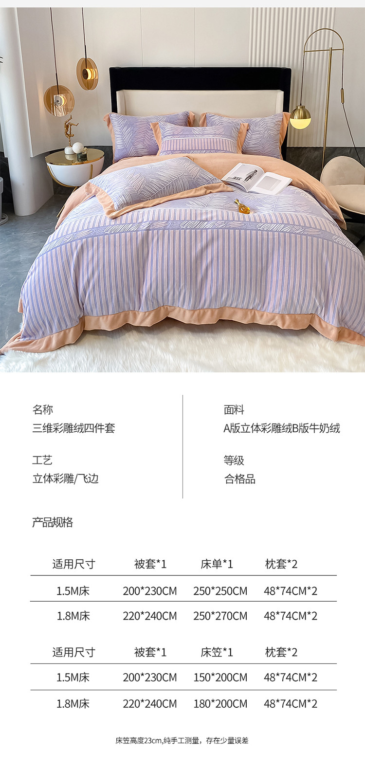 (总)吾秀家居 绒城 230克美拉德数码绒四件套 牛奶绒四件套 - 暖秋系列,花韵,暗香,冬日恋歌-咖,冬日恋歌-棕,冬日森林,花意浓,境玉森林,罗曼庄园,拿铁玫瑰,深紫罗兰,丝绒玫瑰,幽香花语