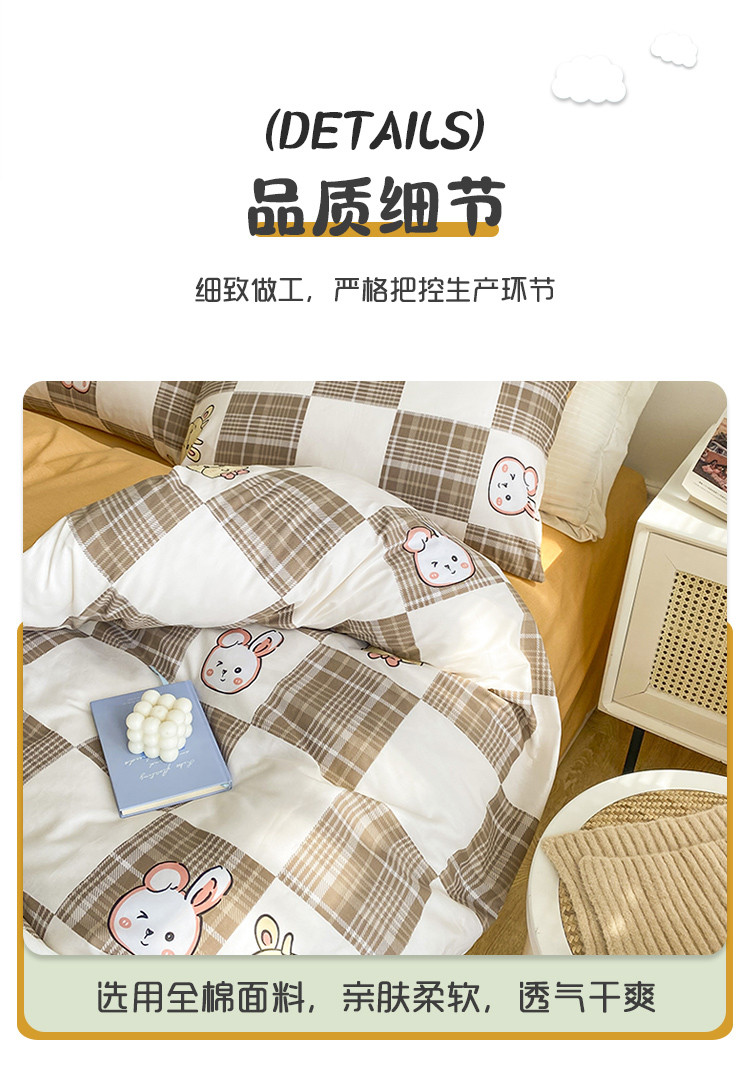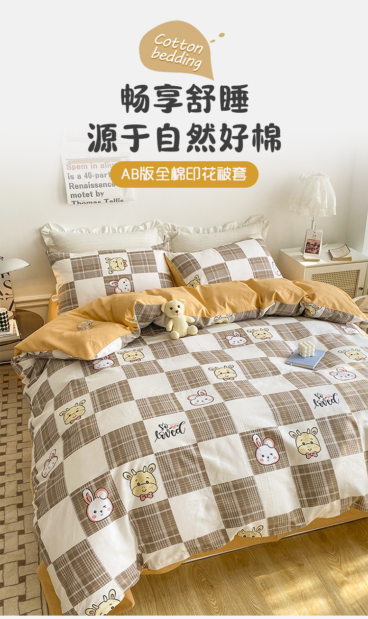 黑马家居2023新款全棉印花喷气12868套件-单被套 蜜桔兔,蜜桔兔