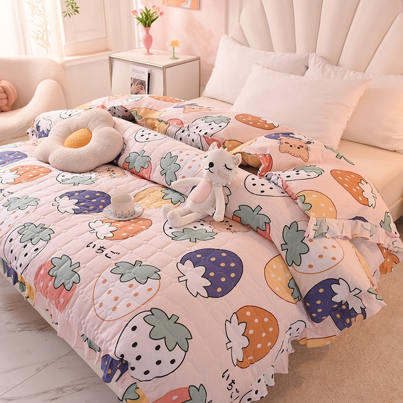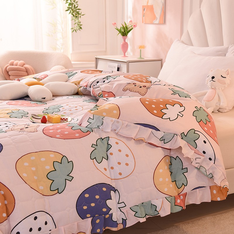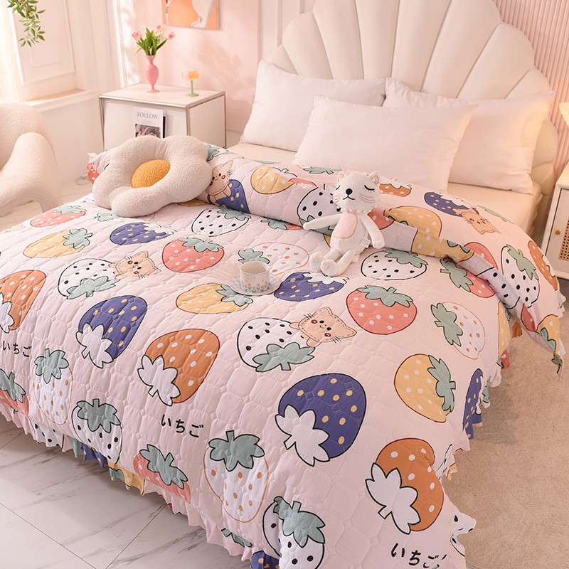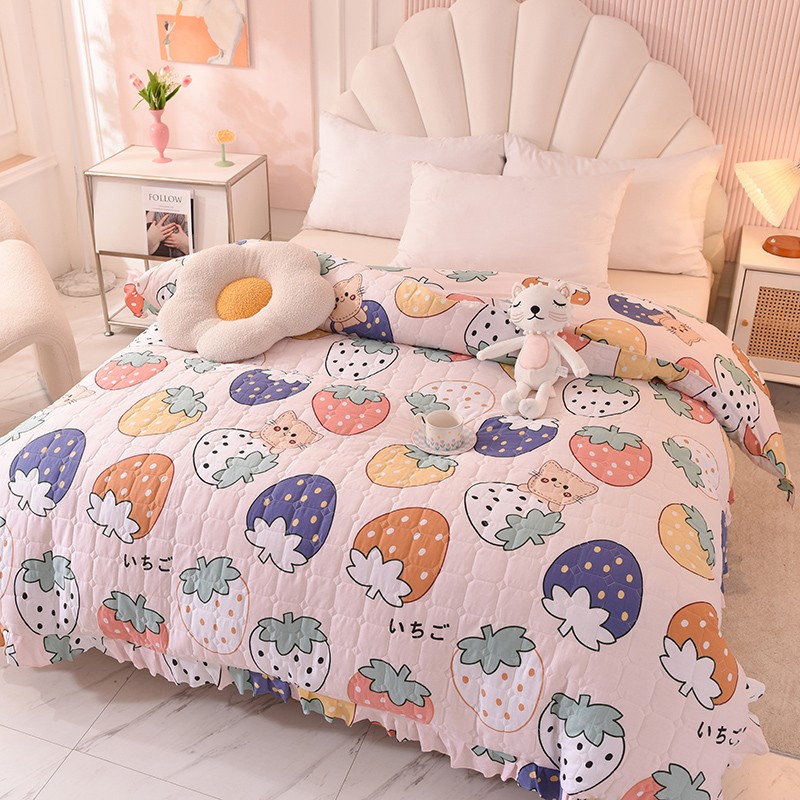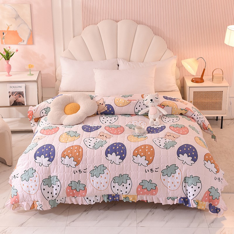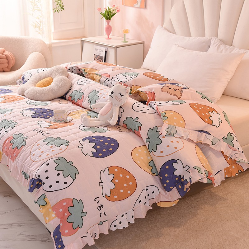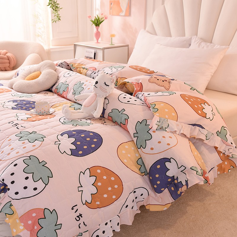 • 91家纺网 家纺一手货源 找家纺 甜之梦 2025新款全棉印花夹棉抗菌被套 草莓乐园