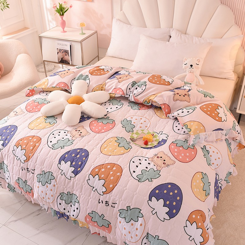 甜之梦 2025新款全棉印花夹棉抗菌被套 草莓乐园