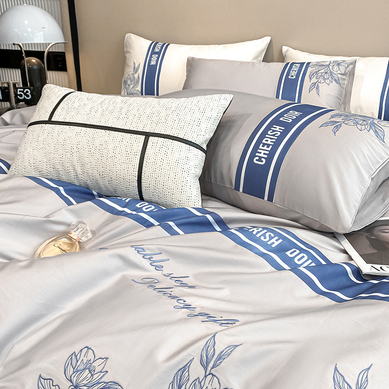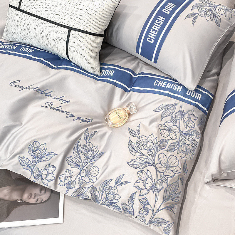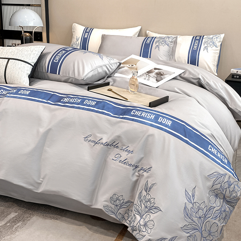 商品名称:涵宸 2022新款加厚全棉刺绣四件套-香榭大道 香榭大道-泥灰