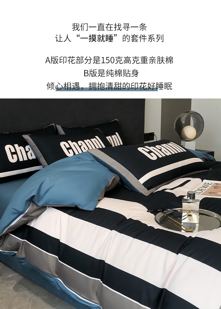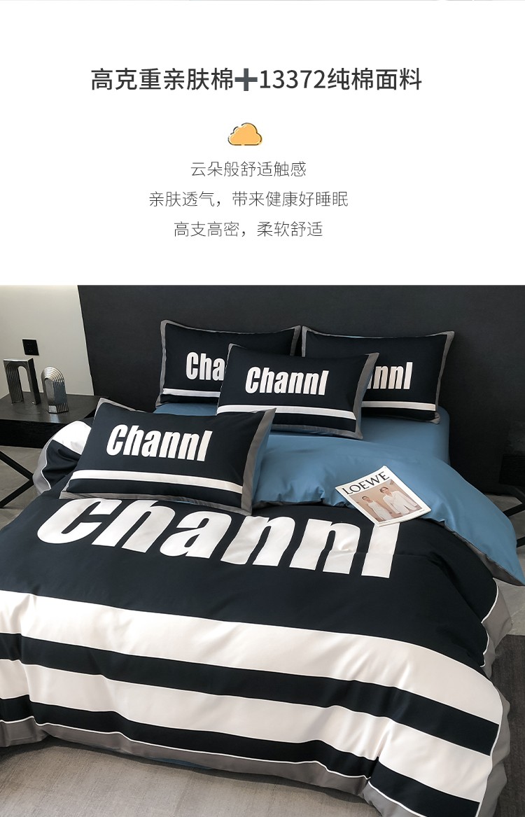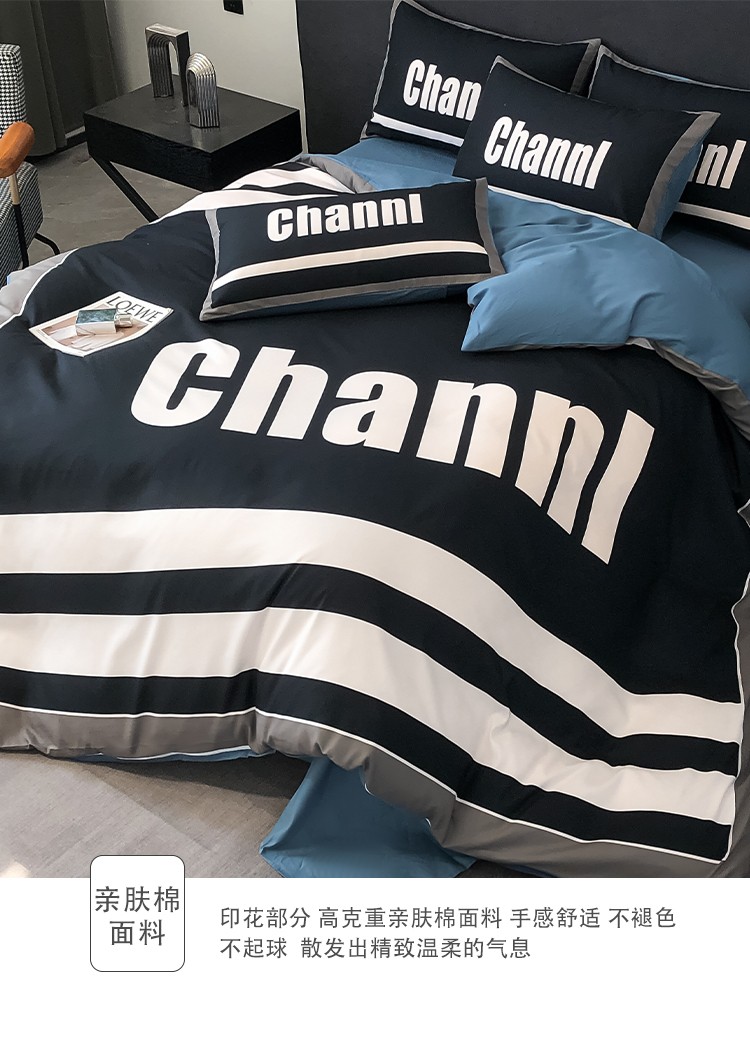 当前位置: 91家纺网 > 商品网购 > 床品套件 > 四件套 > 全棉普通四件套 > 色鬼布艺 2023新款13376纯棉潮牌床单床笠款四件套 轻奢英伦