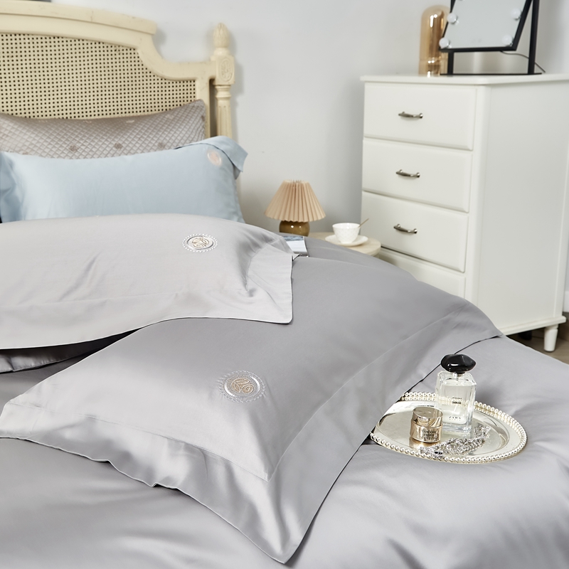 总榻尚家居 2023新款格瑞斯系列100贡缎长绒棉四件套工艺款四件套,格瑞斯紫,格瑞斯白,格瑞斯灰,格瑞斯蓝